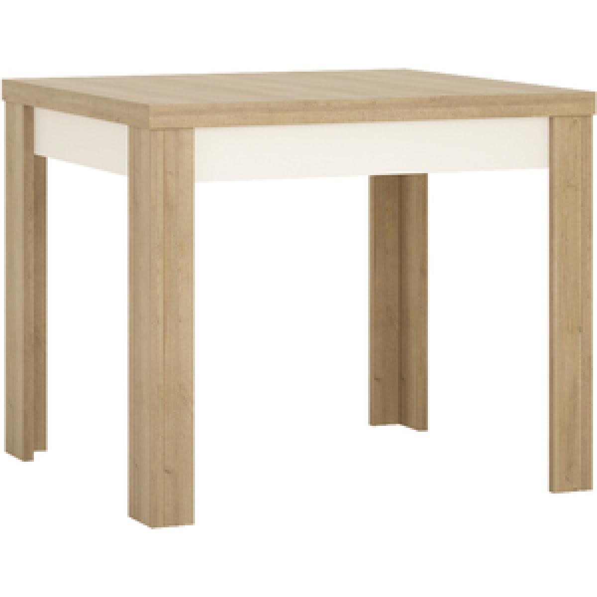 Extending dining room table available in 3 sizes 90/180cm, 140/180cm or 160/200cm in Riviera Oak/White High Gloss - a great addition to any dining room in the size you need. A high-quality collection in an ultra-modern design - with each item complementing each other.