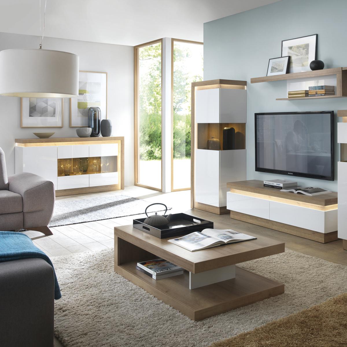 Narrow display cabinet 164,1cm high (including LED lighting) Space-saving narrow 164cm high display cabinet has a smoky glazed area to display family treasures. Includes concealed lighting arrangement. A high-quality collection in an ultra-modern design - with each item complementing each other.