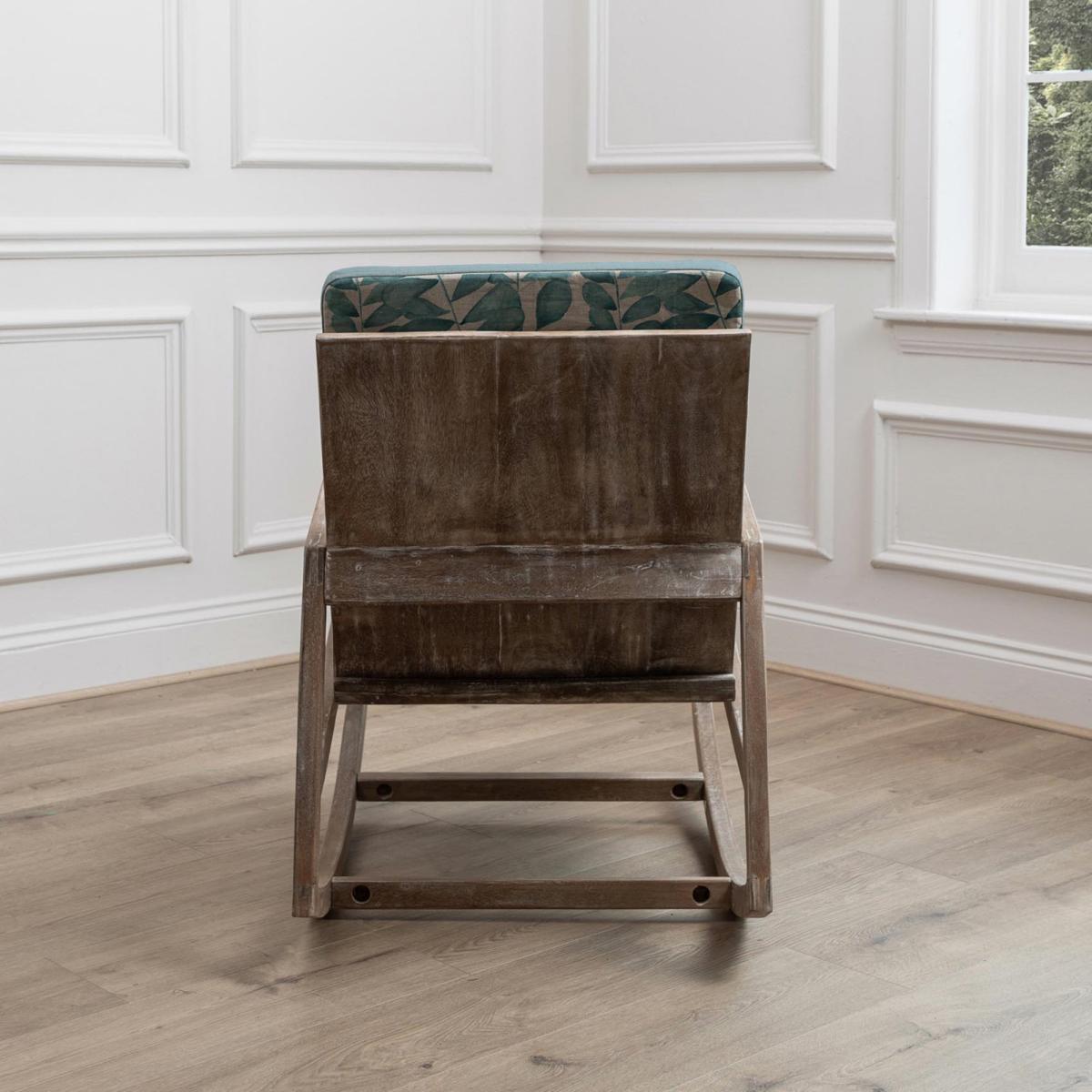 I love this rocking chair because of its fresh aqua blue fabric and simple wooden frame, making it a versatile piece for various interiors. It works really well in coastal or Scandinavian-inspired schemes, adding a pop of colour without overpowering the room. For styling, consider pairing it with soft cushions or a chunky throw to create a cosy nook, or place it in a sunroom or nursery for a relaxed vibe. Its neutral wooden base means it can be easily complemented with other wood tones or painted pieces, giving you flexibility to build a layered, welcoming space.