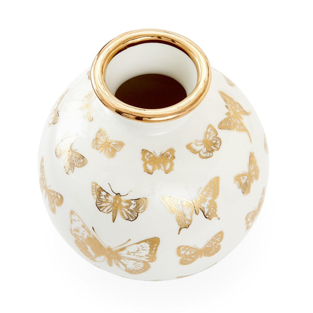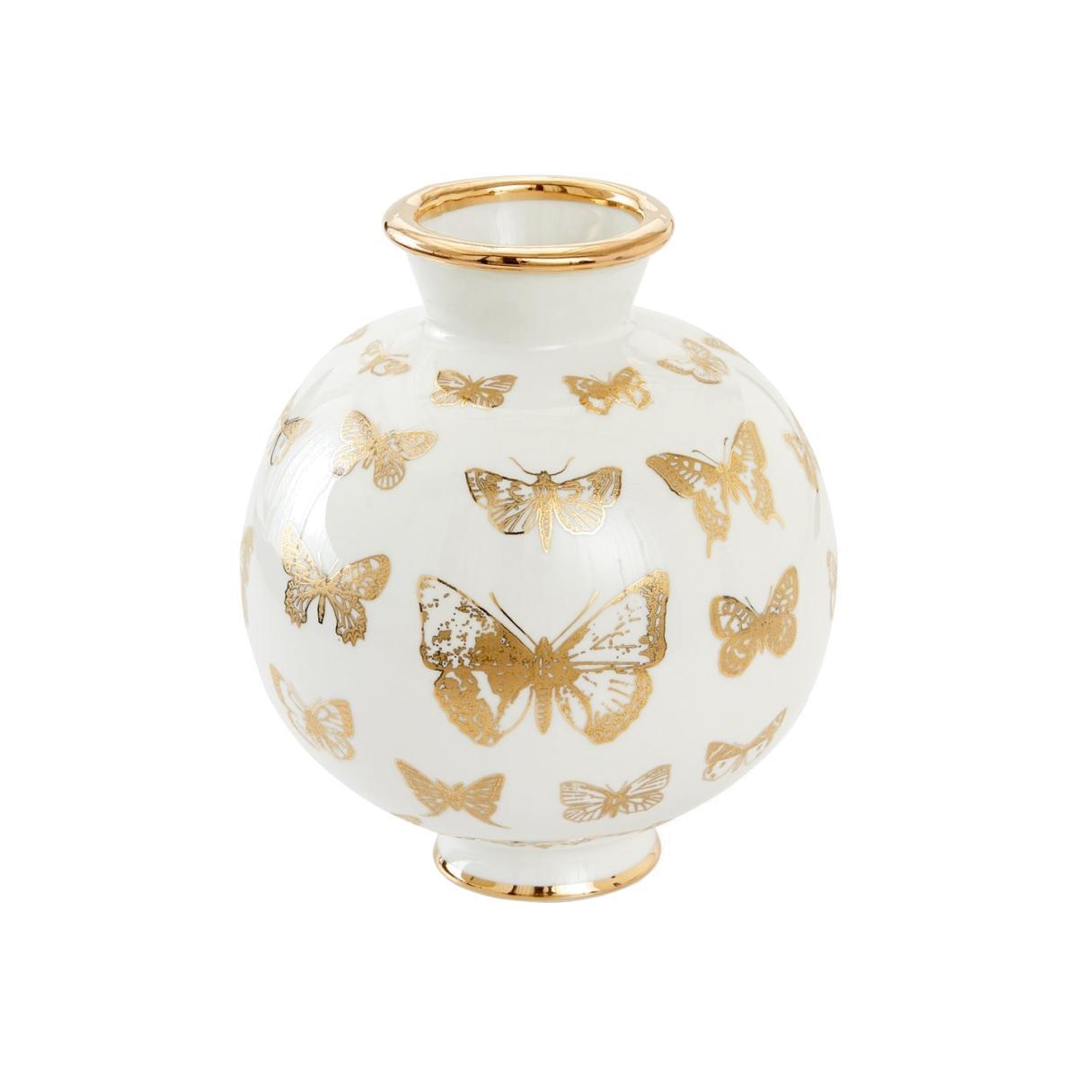 Natural Selections. A glossy, high-fired porcelain vessel wrapped in shimmering gold silhouettes, our Botanist Butterfly Round Vase is the perfect bougie scene-stealer—a rich hippie must-have for your tablescape, mantel, or shelf. Each piece of our pottery starts its journey in our Soho studio where Jonathan and his team handcraft the prototypes.