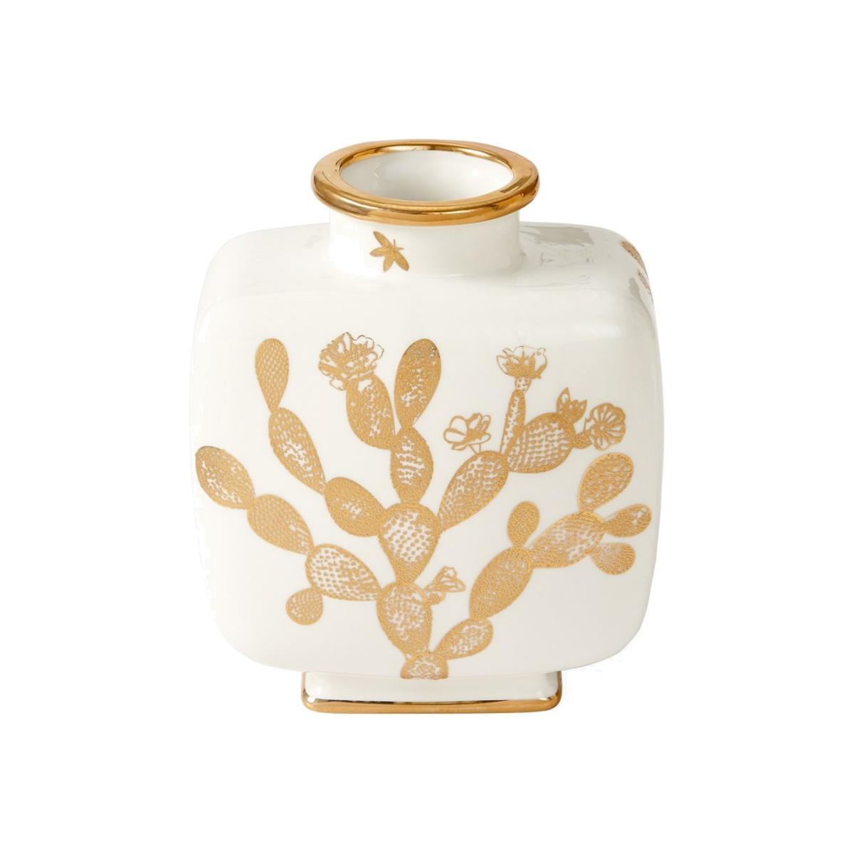 A glossy, high-fired porcelain vessel wrapped in shimmering gold silhouettes, our Botanist Cactus Square Vase is the perfect bougie scene-stealer—a rich hippie must-have for your tablescape, mantel, or shelf. Each piece of our pottery starts its journey in our Soho studio where Jonathan and his team handcraft the prototypes.