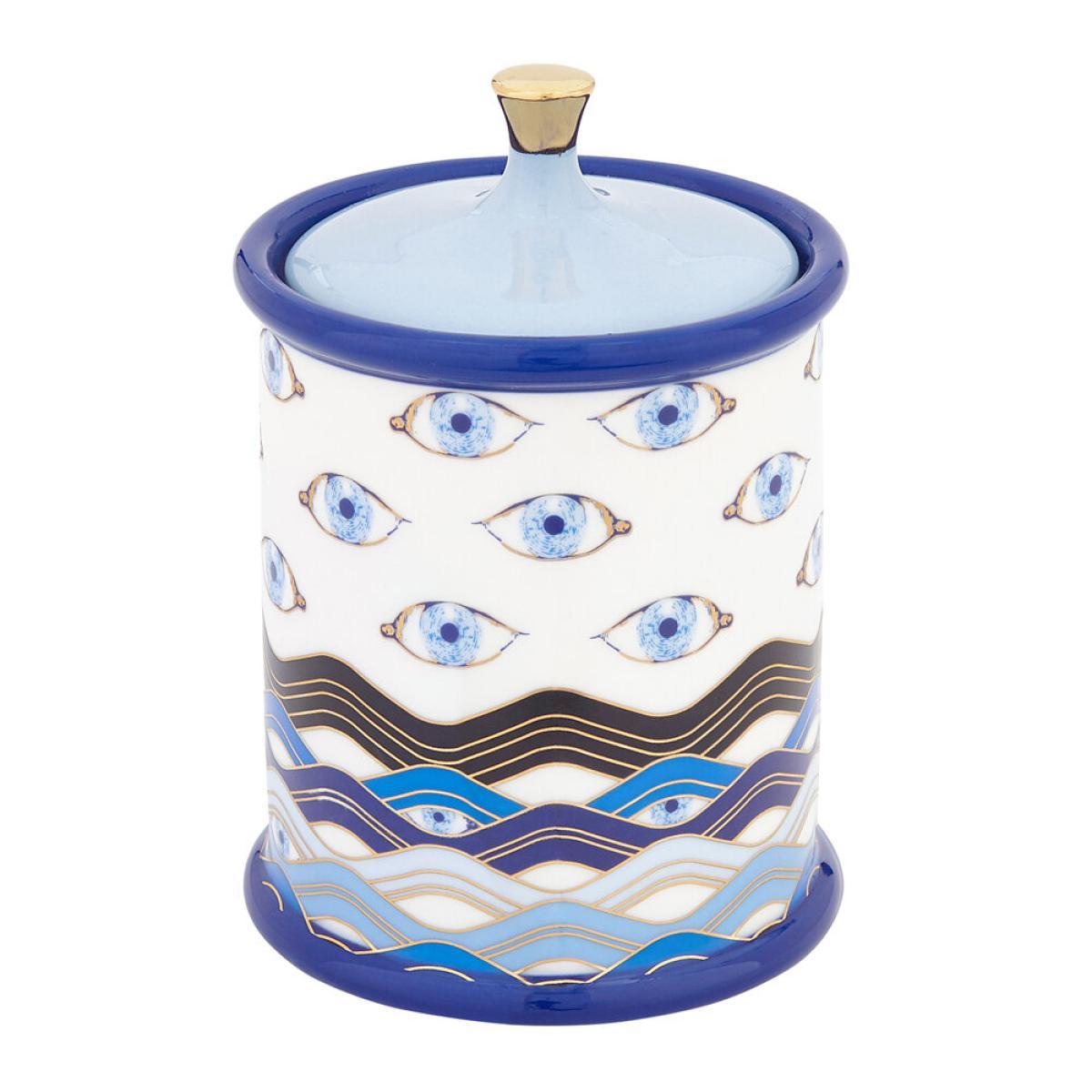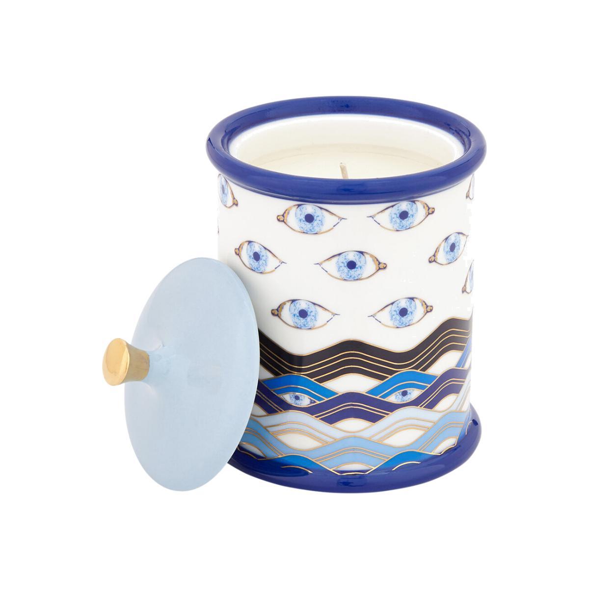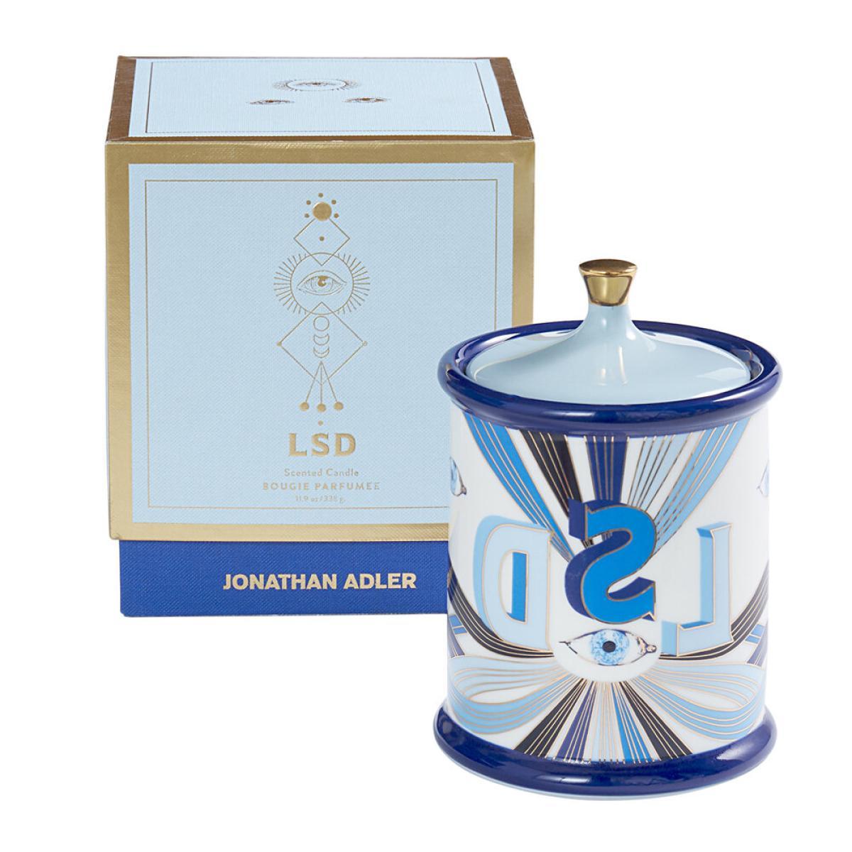 Bask in the glow of this Druggist LSD candle from Jonathan Adler. Encased within a porcelain vessel, it features a dream-like, psychedelic design in brilliant blue hues. Enriched with succulent woody fragrance notes, it is crafted from a blend of soy and paraffin for a stronger scent and cleaner burn. Presented in a beautiful gift box, this candle makes a wonderful addition to any home and a great gift idea.