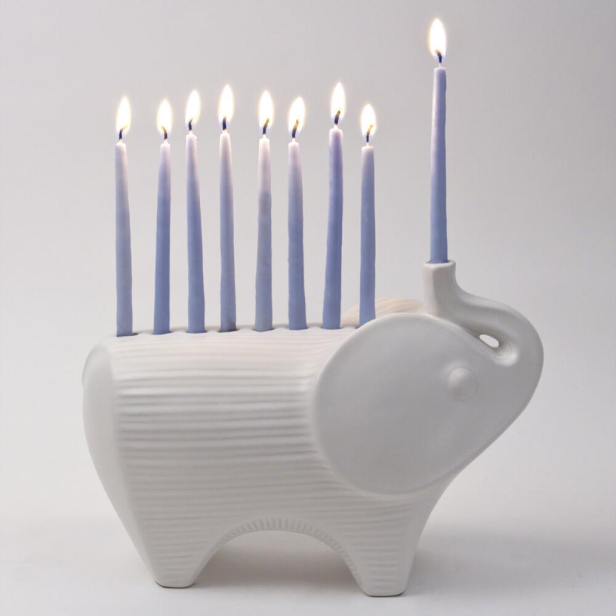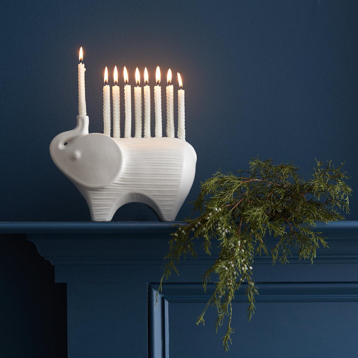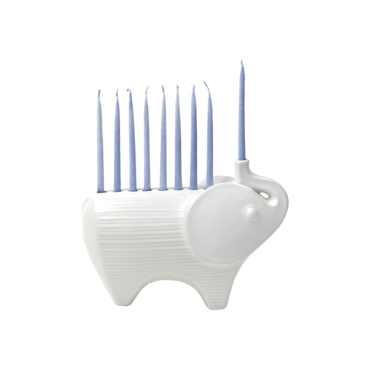 Create an intriguing display in your home with this Elephant menorah from Jonathan Adler. Crafted from high-fired stoneware and finished in a soft satin white glaze, this menorah is presented in a beautiful box and it makes a great gift idea.