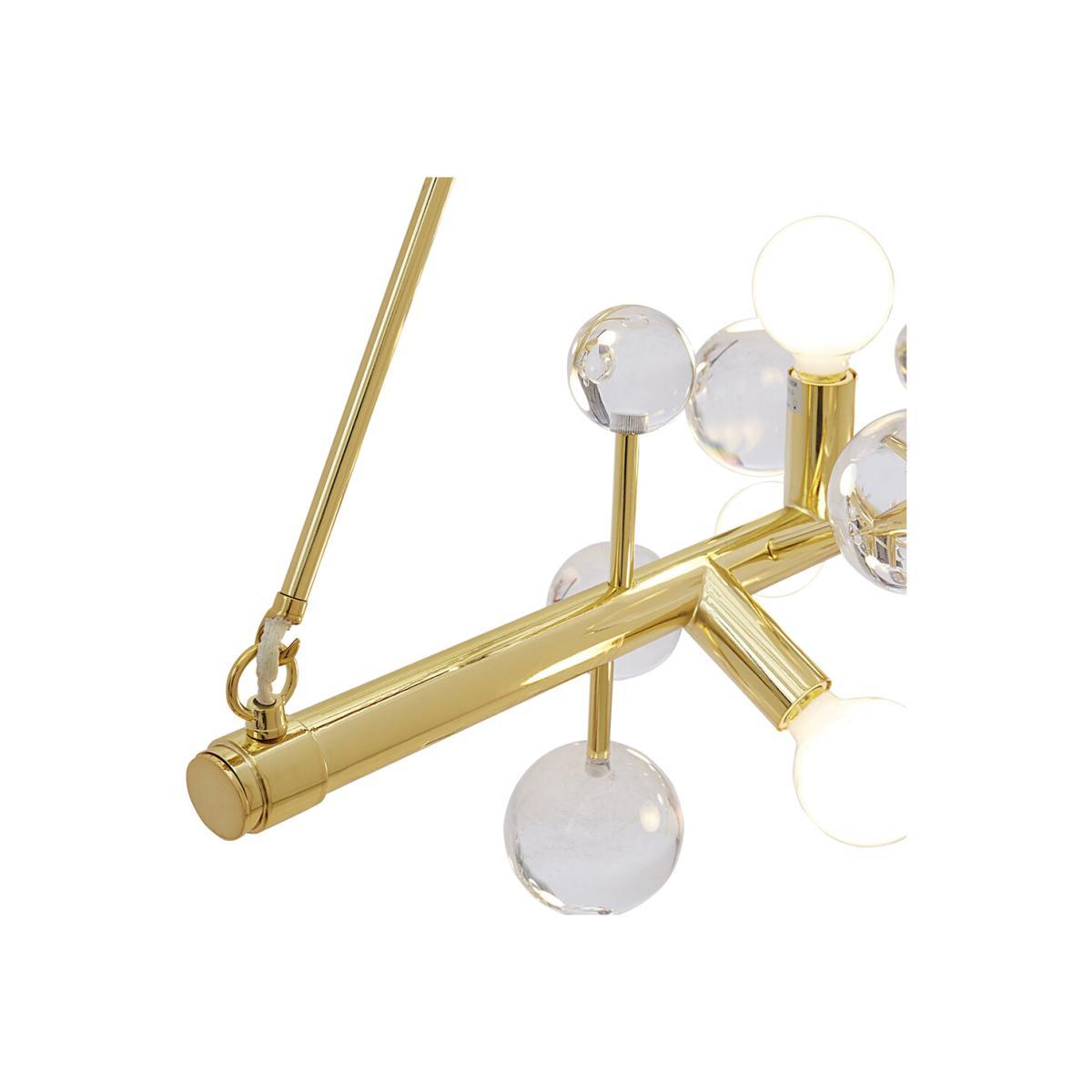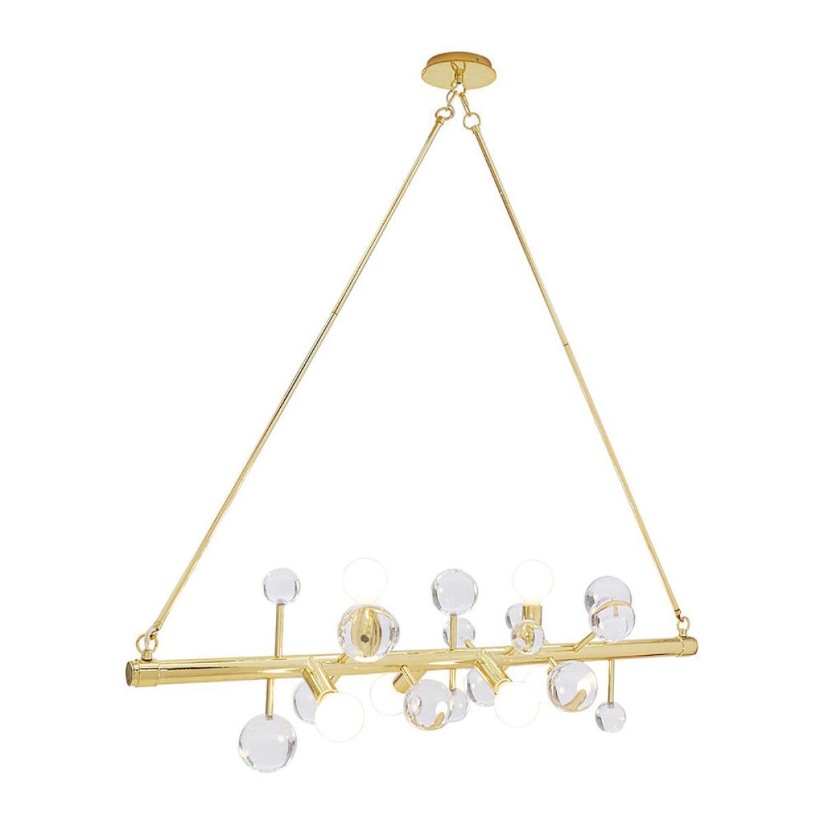 Illuminate your interior in style with this Globo chandelier from Jonathan Adler. Featuring an array of acrylic orbs suspended from two brass rods, this statement ceiling light will bring a touch of futuristic style into your home.