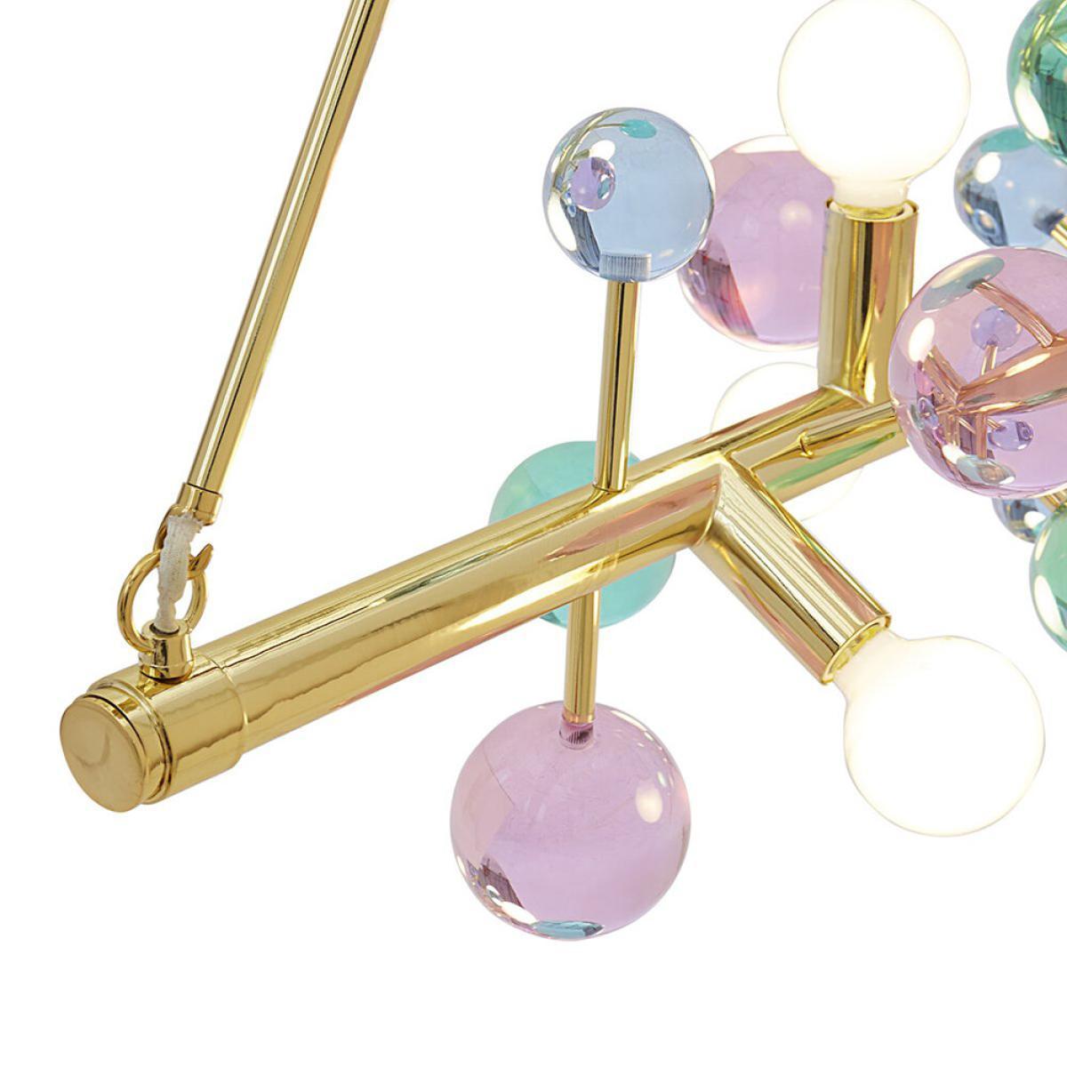 Illuminate your interior in style with this Globo chandelier from Jonathan Adler. Featuring an array of acrylic orbs suspended from two brass rods, this statement ceiling light will bring a touch of futuristic style into your home.