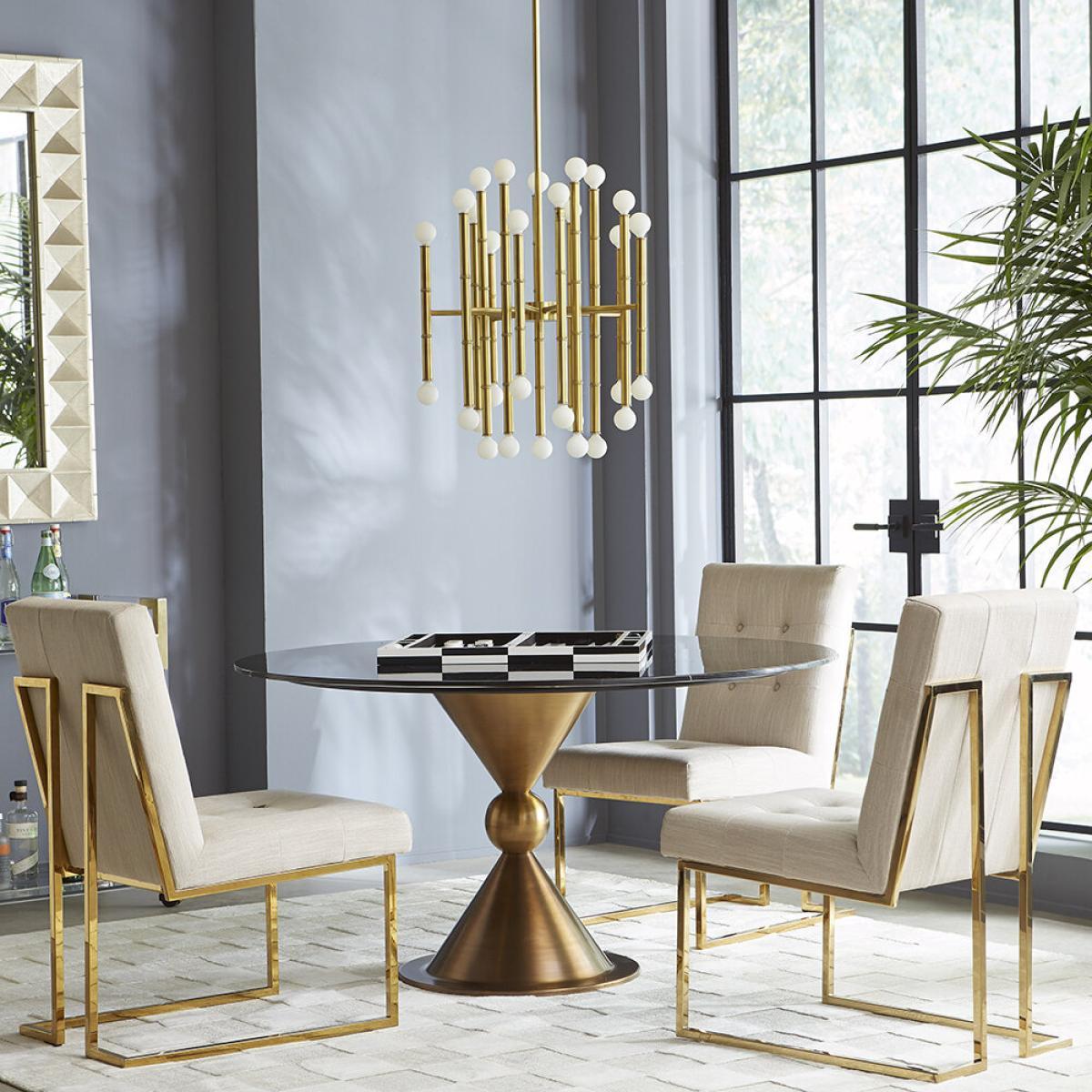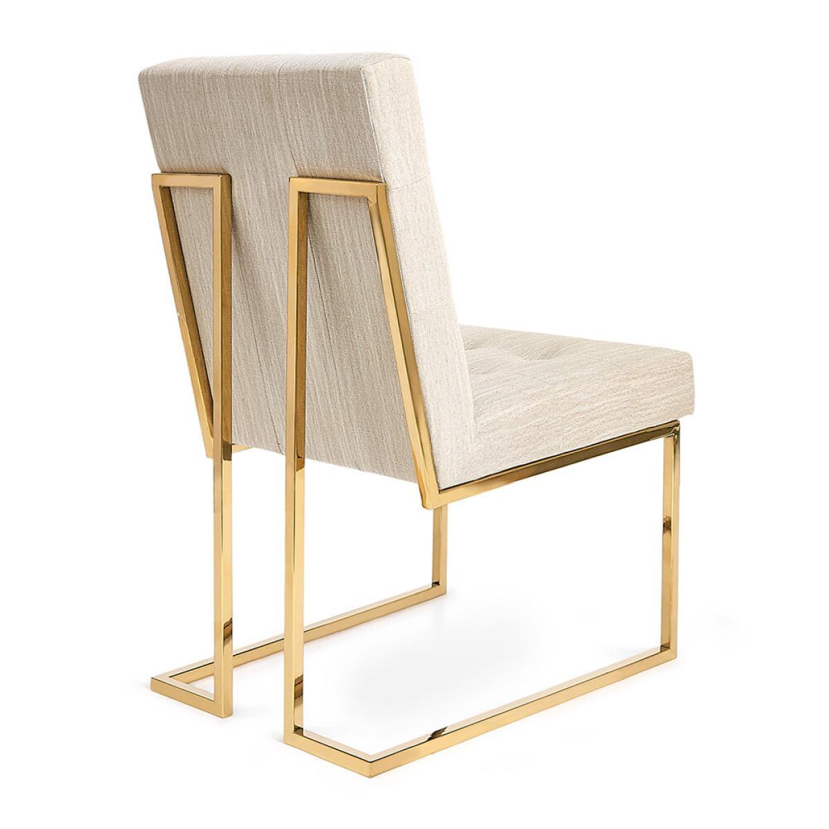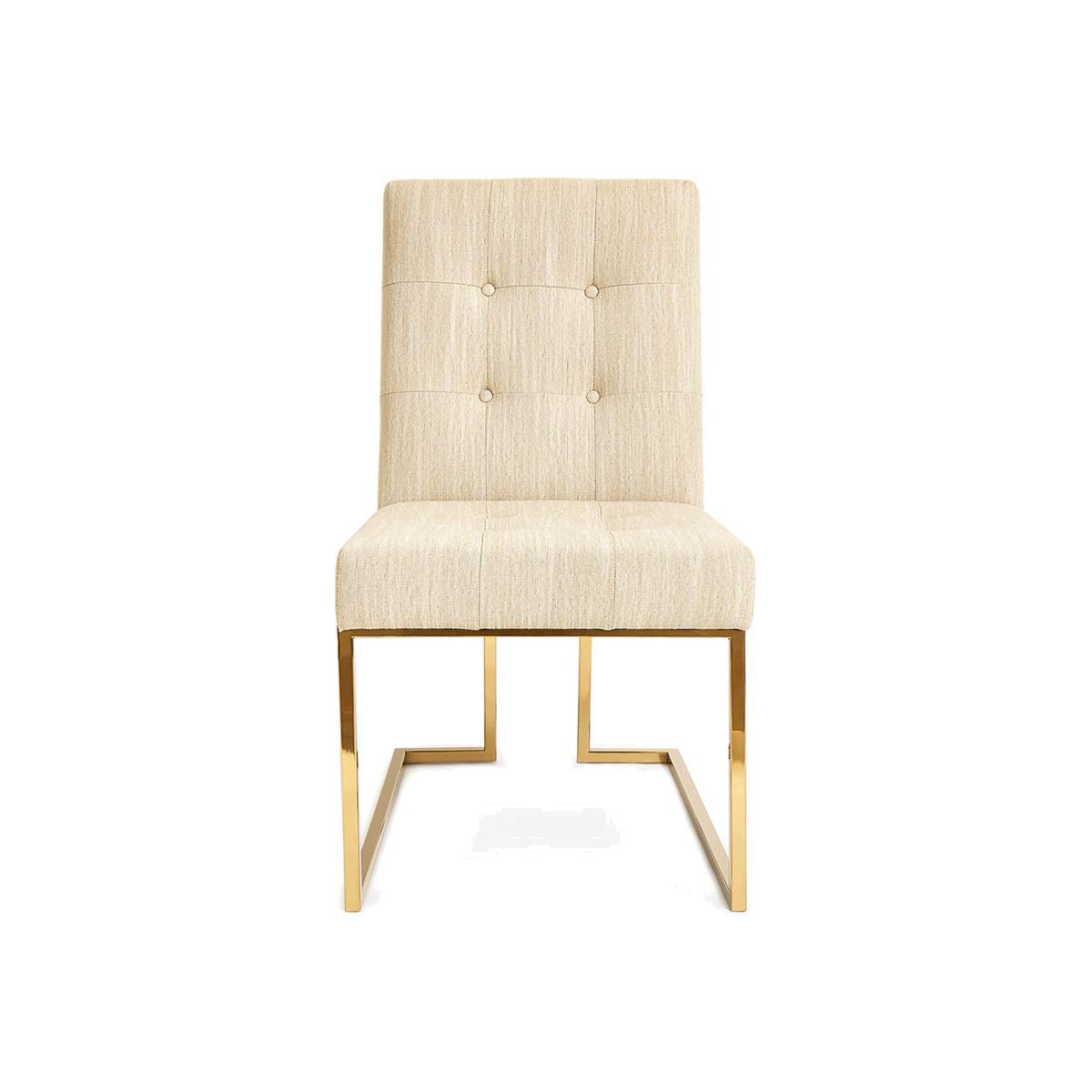 Sprinkle some 70s style into your interior with this Goldfinger dining chair from Jonathan Adler. Featuring a minimalist geometric brass frame, it is finished with Belfast linen upholstery in a soft cream tone for an impossibly chic look. Key features: * Material: brass, polyester, acrylic, wool * Dimensions: H92xW49xD92cm * Seat dimensions: H44xD49cm * 1970s inspired style * Polished brass frame * With cream Belfast Linen upholstery * Professional cleaning recommended