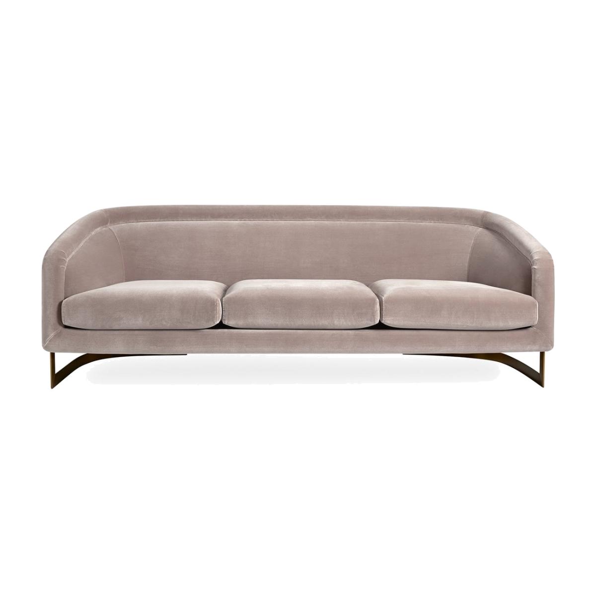Louche Glamour. Think Halston think Studio 54 think sybaritic style. Also think our signature Bacharach details generously scaled for even more comfort. Featuring curved metal supports and fluid modern forms this sofa is très chic from every angle. Sculptural enough to float in a large loft but cozy enough to curl up and watch tv our Bacharach Sofa shows you can have it all. Available in deep and luxe Rialto Reef velvet cradled in a brushed stainless steel frame or dreamy Como Champagne velvet cradled in a brushed brass frame.