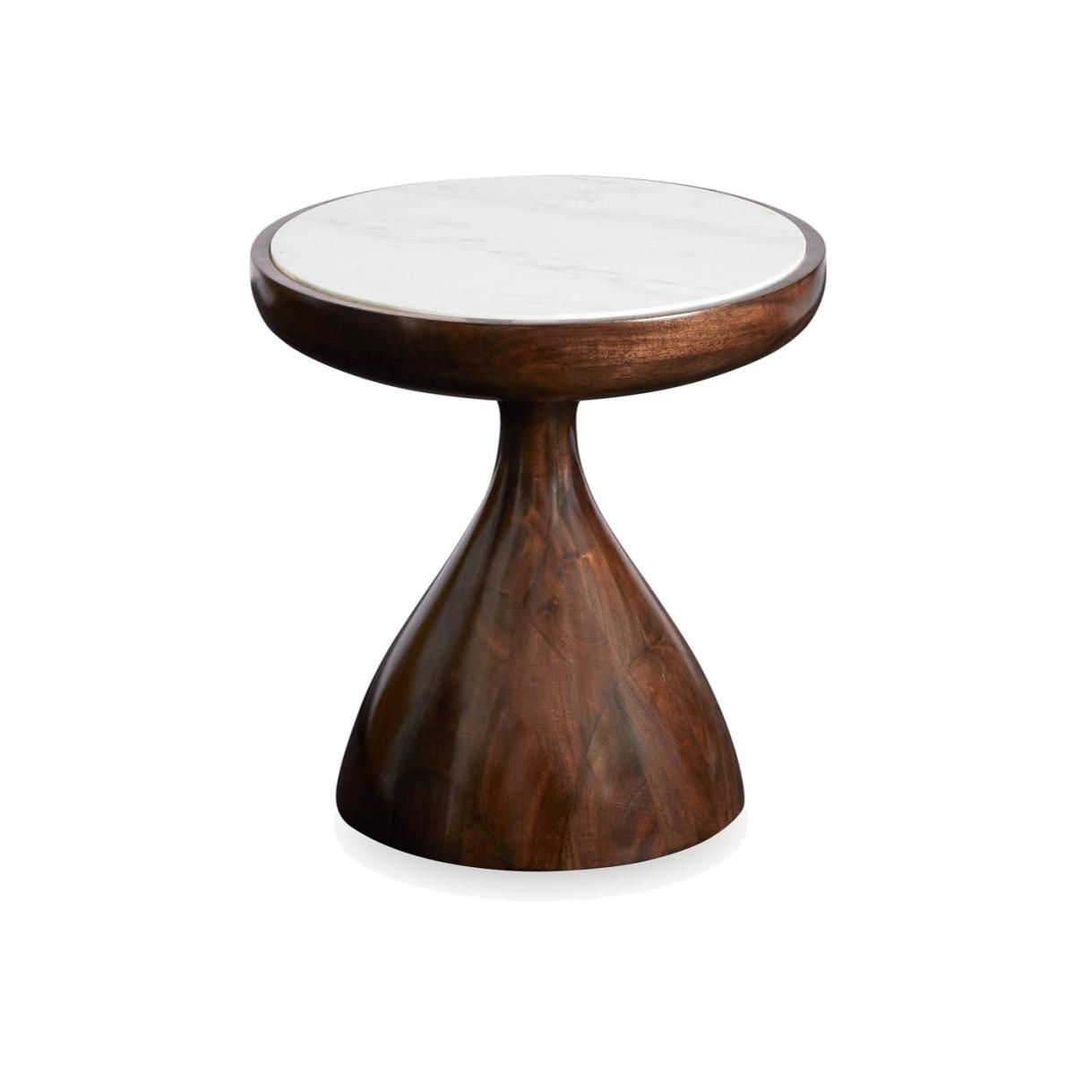 Our Buenos Aires Accent Table features sinuous organic forms made from turned mahogany polished to reveal its natural grain. The rich wood tone is complemented by a white marble top. A wonderfully warm, go-anywhere gem.