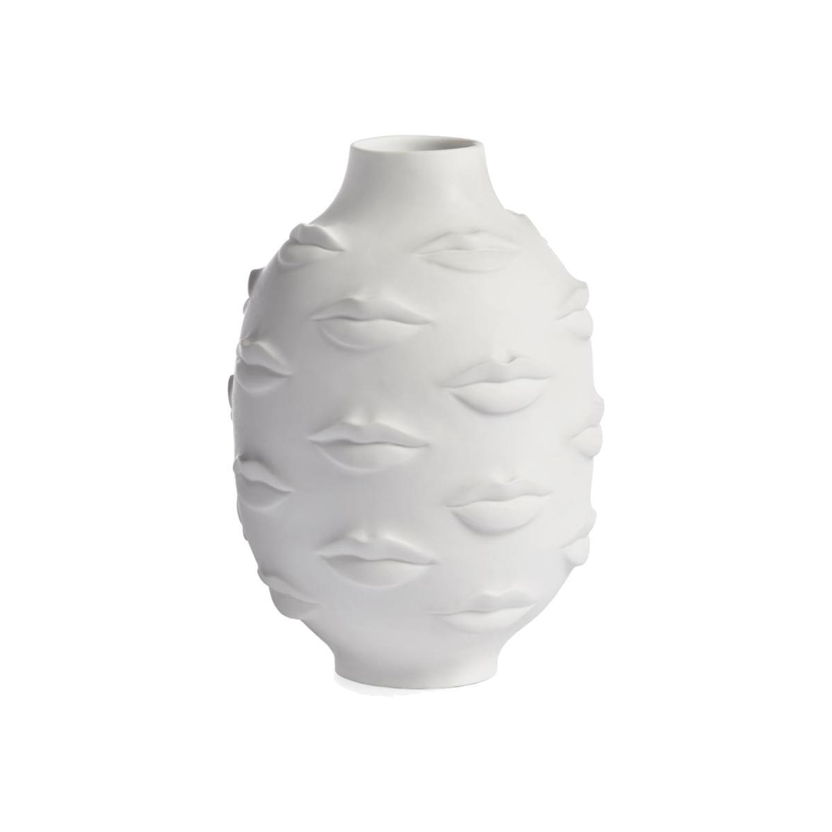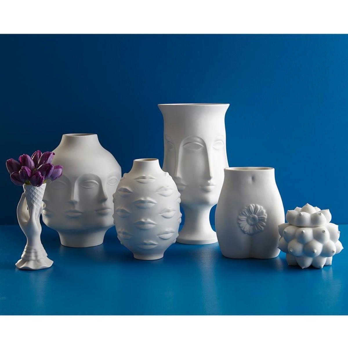 Conversation Piece. Inspired by Gala, wife and muse of Salvador Dali. Crafted from unglazed matte porcelain to create an ethereal vibe. Each prototype starts its journey in our Soho studio, where Jonathan throws the models for the Muse vessels and then substitutes our signature geometric relief patterns with body parts—faces, breasts, lips—to create a surreal style.