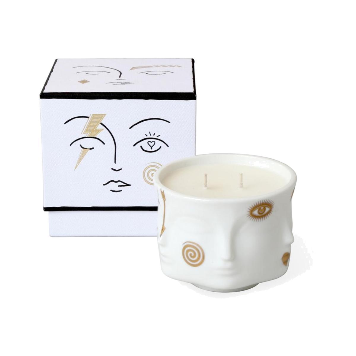A citrusy floral candle in a porcelain vessel featuring our signature head-turner, Dora Maar, provocatively punctuated with saucy iconography in pure, gleaming gold. The scent: pink grapefruit, raspberry, French cassis, violet leaves, rose petal, grape leaf. Our Muse Candles are a soy/paraffin blend for a cleaner burn and stronger scent reach. Enjoy their essence for an average 48 hour burn time—trimming the wick regularly to a quarter inch will help your candle burn at a slower rate. Once your candle is gone, the vessel is begging to be reused as a vase (we recommend pretty posies). Packaged in a nifty gift box, they make the perfect hostess present (or pick-me-up for yourself).