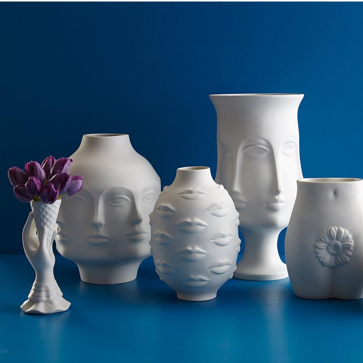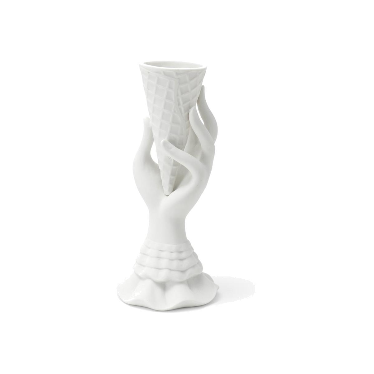 Chicly surreal with flawless, fluid lines, we believe our I-Scream vase is a new modern classic. Like all the Jonathan Adler pieces we stock, the original mold has details that were were painstakingly sculpted by hand and then cast in matte porcelain. And the deliciousness is in the details: An Elizabethan ruff sleeve provides decorative flourish and stability. Fab on a bedside table and the perfect hostess gift, you'd be mad not to place one at each place-setting for a formal occasion. The height is perfect for tablescapes, too: not so tall that they'll obstruct view.