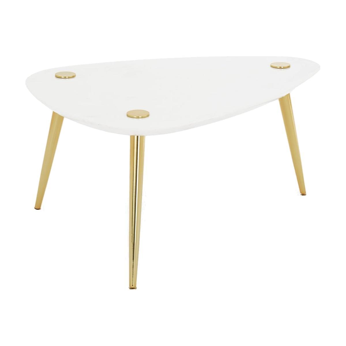 Classic Curves. Curved marble tabletops on polished brass legs, our triangle tables are chic classics that complement both minimalist and maximalist styles. Dynamic on their own, as a duo they’re designed to mingle—tuck the small black table neatly beneath the large white version to create new shapes.