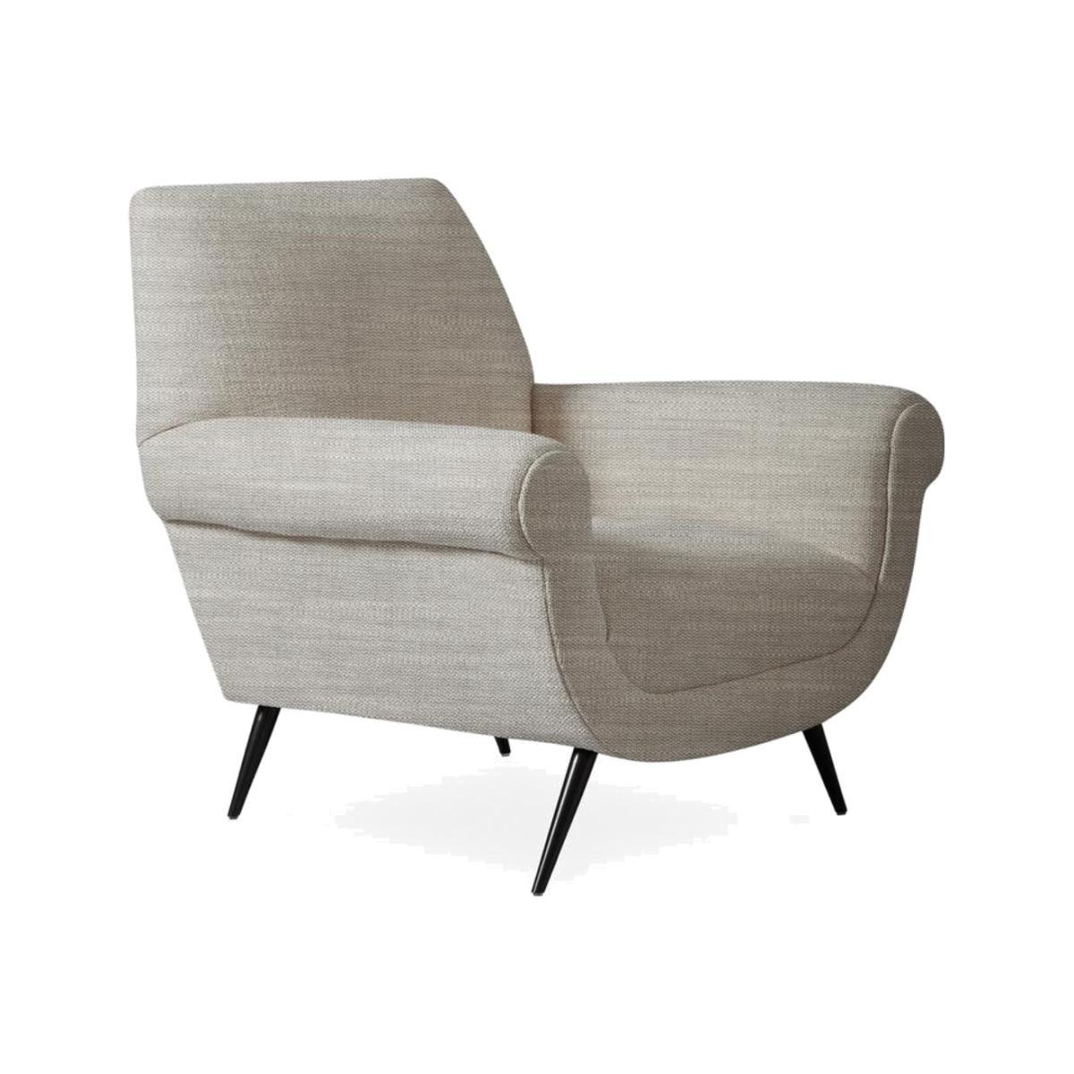 Posh Perch. With a lofty and inviting seat and a dynamic profile, our Marcello Lounge Chair channels Italian glamour. It's our pared down and posh riff on the classic rolled armchair. The horseshoe-inspired shape cradles you chicly, while tapered blackened steel legs add a modernist edge. Envelope yourself in European-inspired comfort. Available in your choice of custom fabrics and base finishes or ready-to-ship in select fabrics.