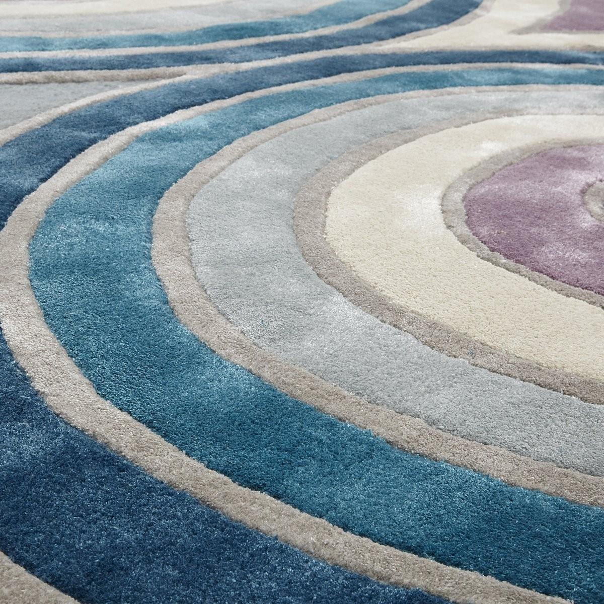 Fall feet first for our mod pattern and heavenly hues. Featuring concentric loops in cool blues and lavenders with luminous silver accents, our Milano Hand-Tufted Rug is soft and chic with a subtle allover sheen. A dreamy foundation for your most glamorous design fantasies. Each individual yarn is hand-punched through a mesh fabric sheet with a tufting gun to create our signature designs.
