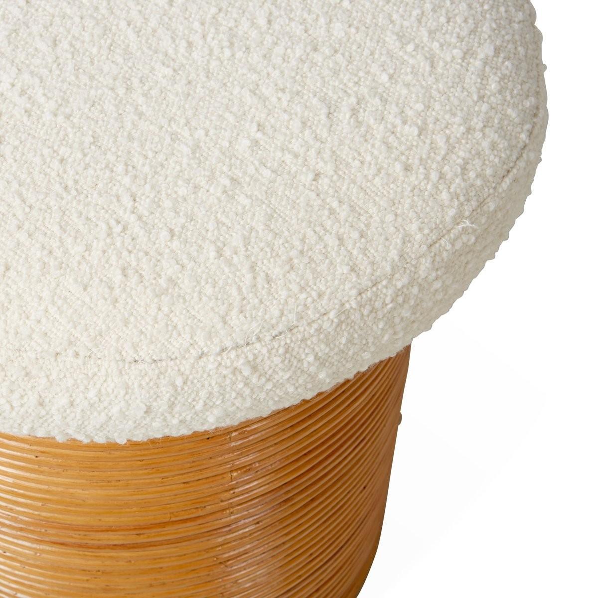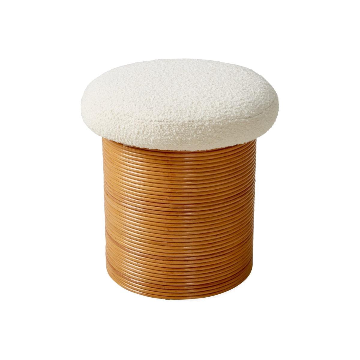 Global Craft. Our Riviera collection is the update on classic French 50s rattan you've been waiting for. Evoking grand global glamour, every piece features exquisite craftsmanship&emdash;reeds are hand-coiled and steeped in water, then hand-applied and fastened to framework for a stacked effect. Finished in a honey-toned stain coated with glossy lacquer, the result is a rich, room-warming neutral worthy of its sun-drenched namesake. Topped with an oatmeal bouclé cushion, our Riviera Tuffet is even more perfect paired with our Riviera Lounge Chair.