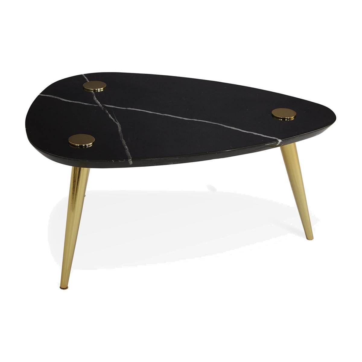 Classic Curves. Curved marble tabletops on polished brass legs, our triangle tables are chic classics that complement both minimalist and maximalist styles. Dynamic on their own, as a duo they’re designed to mingle—tuck the small black table neatly beneath the large white version to create new shapes.