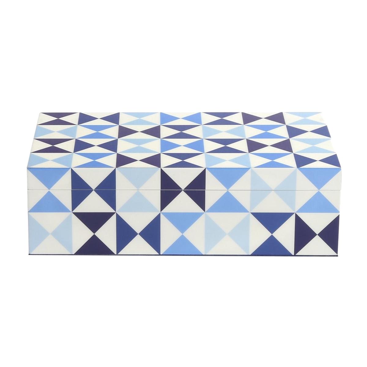 Luxe Lacquer. Featuring hand-finished patterns in glossy lacquer our Sorrento Lacquer Boxes bring brilliant blue hues and trippy dimensionality to your shelf mantel or tablescape. Keep your possessions handy but hidden. Available in three sizes for stashing stacking or making a stand-alone statement.