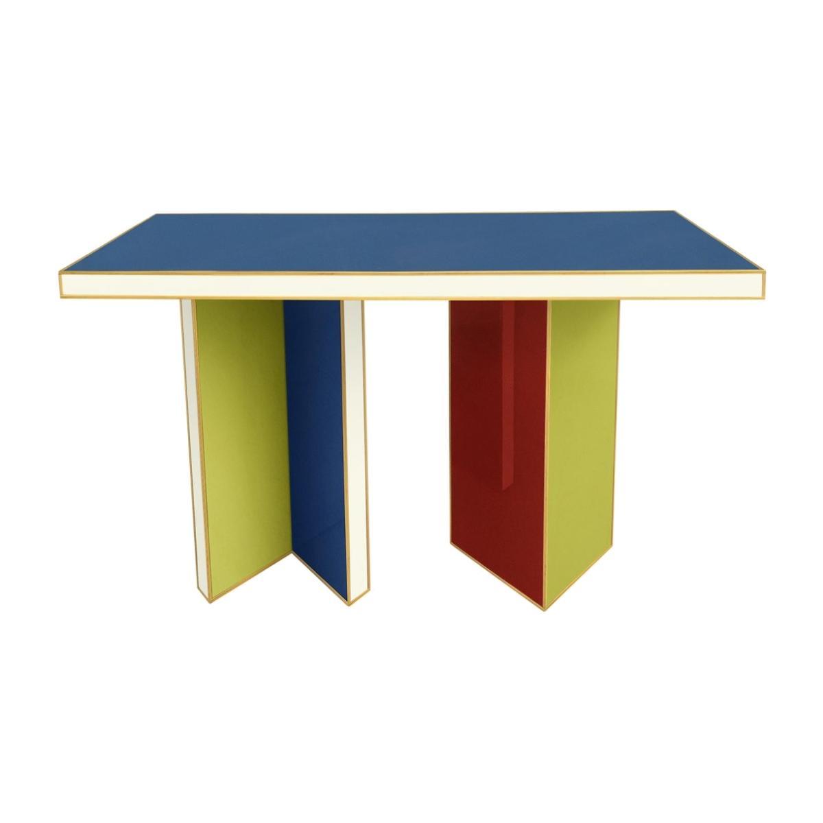 Chic, Graphique, Future Classique. Bring a rich and moody Milan moment into your life with our new Torino collection's signature palette. The Torino Console Table features back-painted glass panes treated to bold brass edges for extra shine. And you have options—the legs can be arranged in four configurations to create different vibe. Put them in the centre for a monolithic feel or angle them for a jagged 80s mood. A remarkable match for both neutral and already-bold abodes, this is a statement piece that never loses its cool. A standout behind a sofa or a welcomed wow in any entryway.