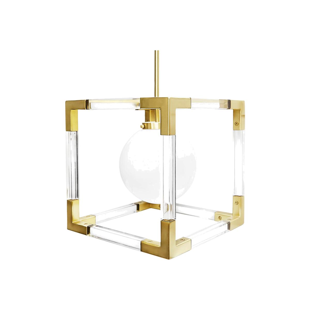 Bring some modern glamour into your home with this Jacques pendant light from Jonathan Adler. Featuring a striking cube design made from crystal clear acrylic, it is complete with contrasting brass details for an extra luxe finish.