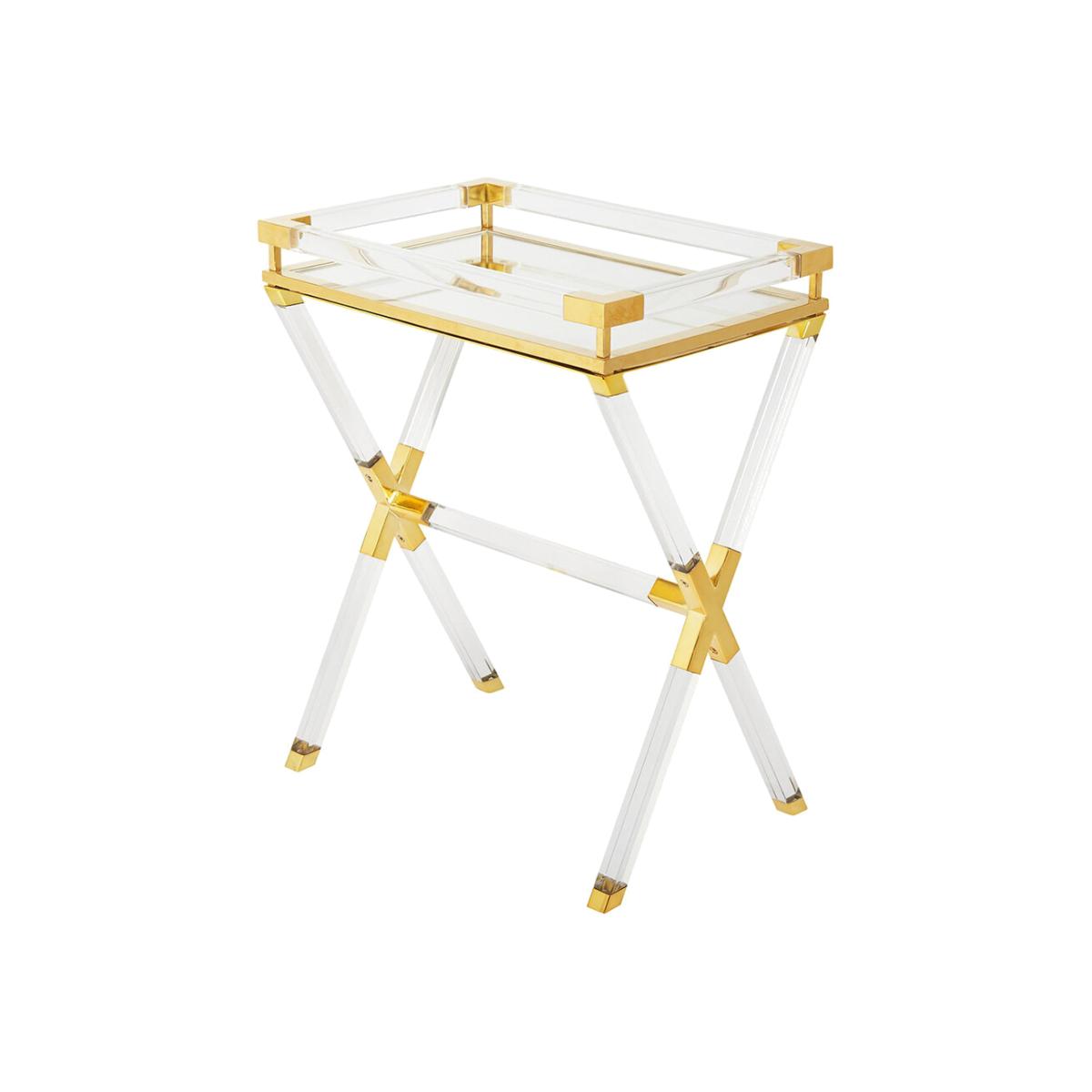 Inject some modern glamour into your home with this Jacques tray table from Jonathan Adler. Made from crystal clear acrylic, it is complete with contrasting brass details for an extra luxurious finish.