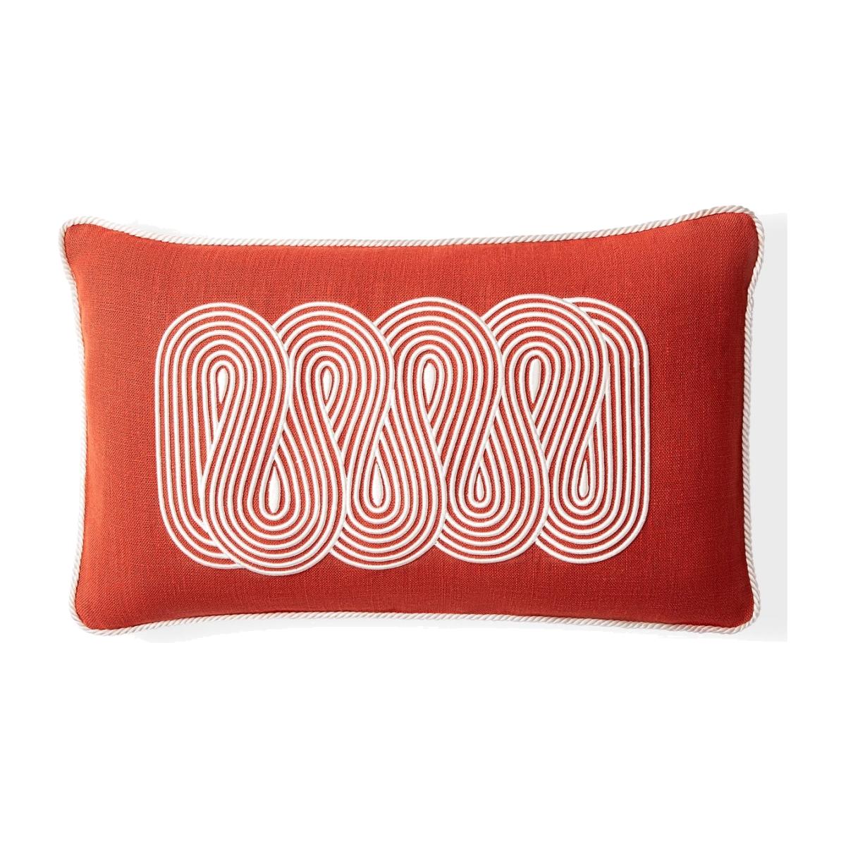 I love the Jonathan Adler Pompidou Path Cushion for adding a pop of colour and a graphic element to a room. Its bold, geometric design works well in contemporary interiors, especially as a statement piece on a neutral sofa or armchair. It also pairs nicely with other patterns when styled thoughtfully, such as contrasting textures or simpler décor to let the cushion stand out. Practical styling tips include mixing it with textured throws or layering with smaller cushions for an eclectic look. Its vibrant hue makes it versatile for living rooms, bedrooms, or even a lounge area, bringing a bit of modern flair without overwhelming the space.