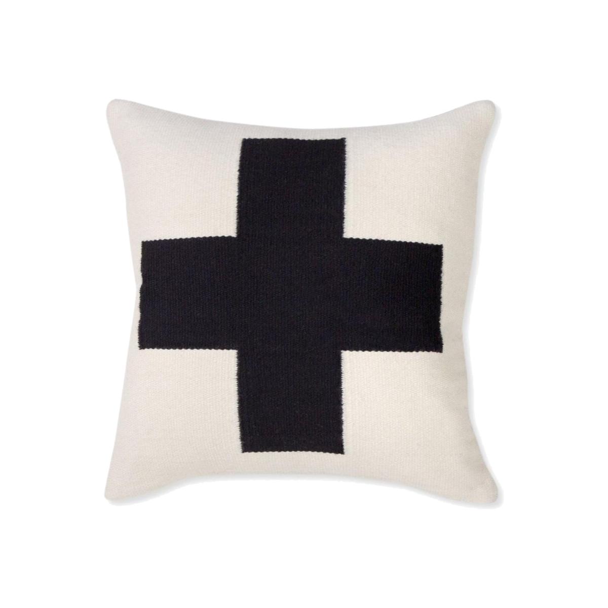 I really like this cross cushion for adding a graphic focal point to various interiors. Its bold black and white design lends itself well to modern spaces, particularly minimalist or contemporary schemes, but it can also inject a playful touch into more eclectic or Scandinavian decor. I recommend using it as an accent piece on neutral sofas or beds to create visual interest without overpowering the room. Practical styling tips include pairing it with other monochrome accessories or contrasting textures to enhance its graphic punch. It's versatile enough to work well in living rooms, bedrooms, or even a stylish reading nook, making it a smart choice for creating a look that’s both fresh and functional.