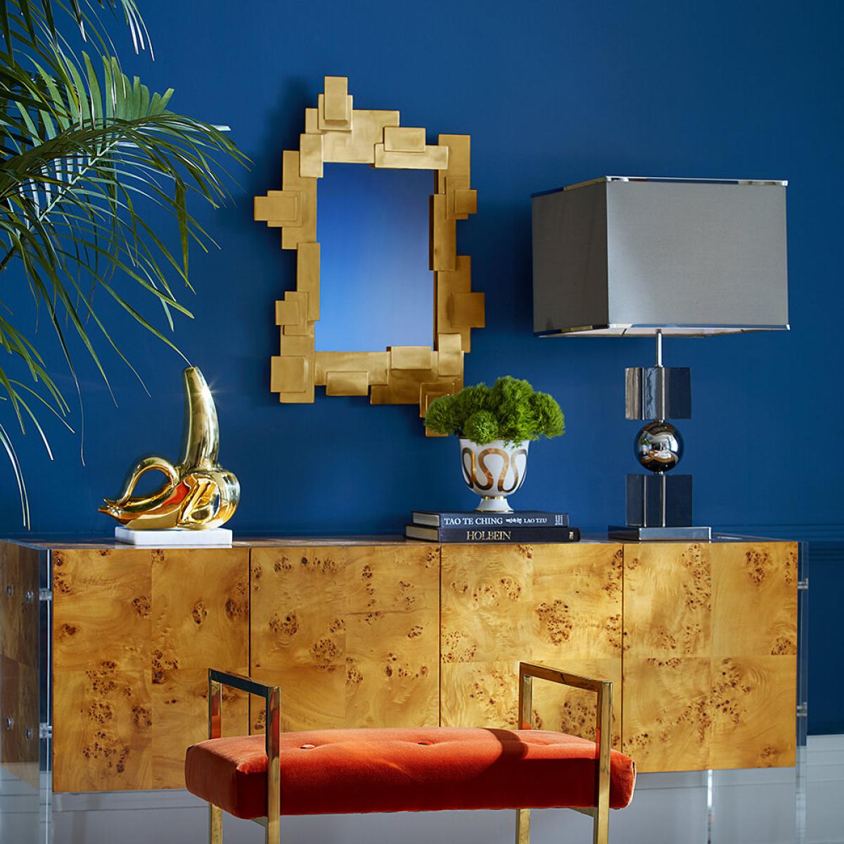 I love the Jonathan Adler Puzzle Mirror for its bold, geometric design that instantly adds a contemporary edge to any space. The gold finish makes it a versatile statement piece, especially well-suited to modern, glam, or eclectic interiors. It works beautifully as a focal point above a console table or in a hallway to create visual interest. For practical styling tips, consider pairing it with minimalist or monochrome décor to let the mirror stand out, or group it with other metallic accents for a cohesive look. Its unique puzzle-like frame also lends itself to playful, creative arrangements, making it a great option for those wanting to bring personality into their interiors.