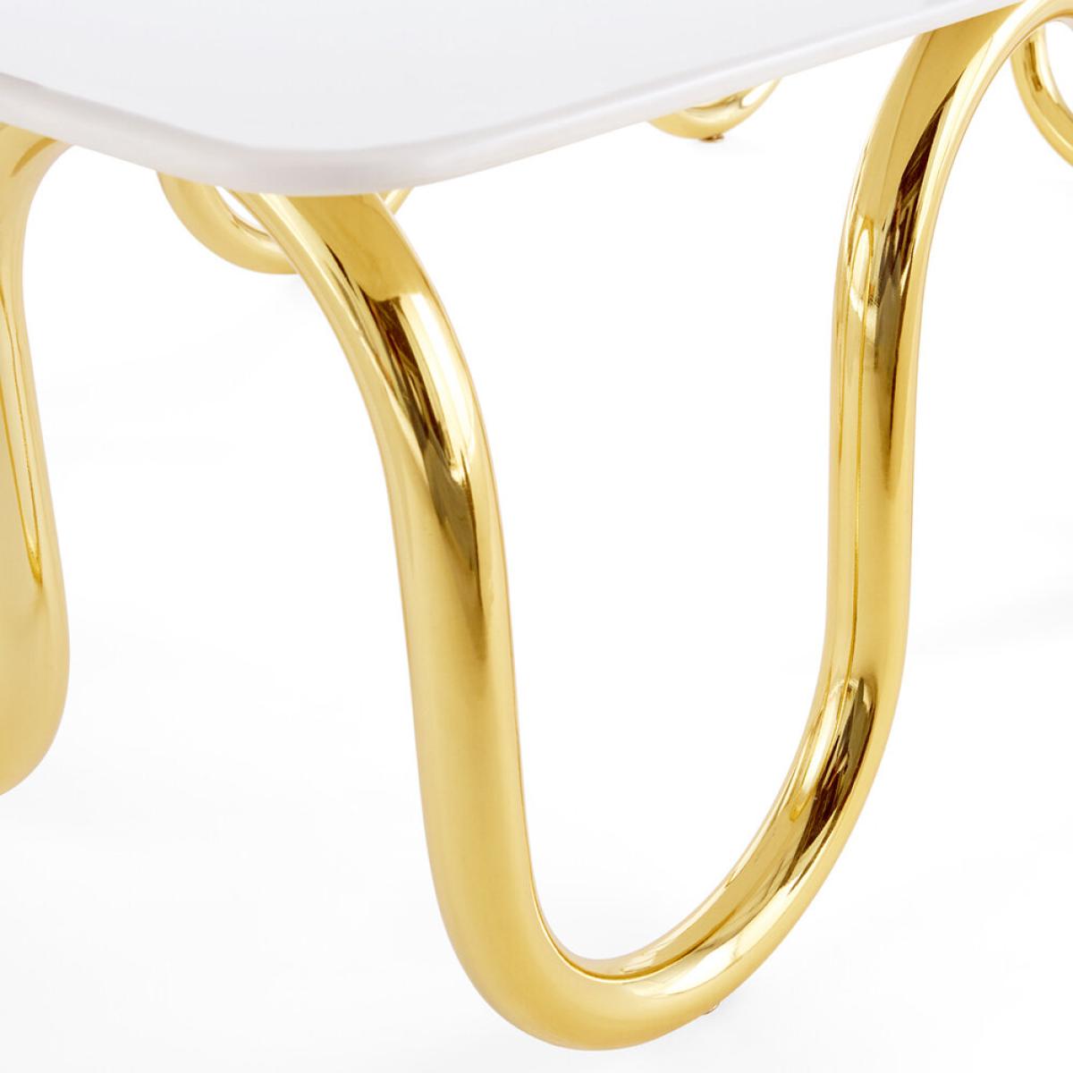 Make a statement in the home with this Scalinatella cocktail table from Jonathan Adler. Boasting an impossibly chic solid Carrara marble tabletop, it features a striking gold base made from a single sinuous brass tube.