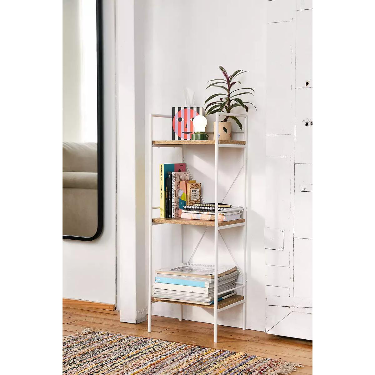 Elegantly minimalist bookshelf featuring a powder-coated metal frame and three tiers of particle board shelves. Perfect for putting your personal library, favorite trinkets and blooming plants on display. Assembly required. *Online return only. This item cannot be returned in-store. * *Please note furniture items currently cannot be shipped to Northern Ireland or The Republic of Ireland. Delivery of large furniture items may take 2-3 weeks and are therefore not eligible for Next Day Delivery.* **Content + Care** \- Assembly required \- Metal, Particle board \- Wipe clean **Size** \- Dimensions: L: 34cm x W: 27cm x H: 95cm \- Shelf dimensions: L: 34cm x W: 24cm x H: 32.8cm \- Leg height: 95cm, removable \- Shelving weight limit: 5kg per tier \- Weight: 4.1kg