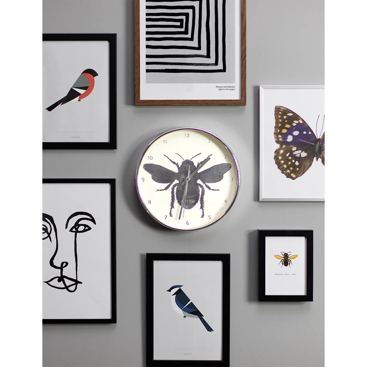 Bring an extra bit of buzz to your decor with this bee clock by Jones Clocks. A foil-printed insect design sits at the centre of the round dial, with metal-plated linear hands and hour markers providing a contemporary look. A flat glass lens and polished metal case bring a neat finish to this wall-hanging piece.