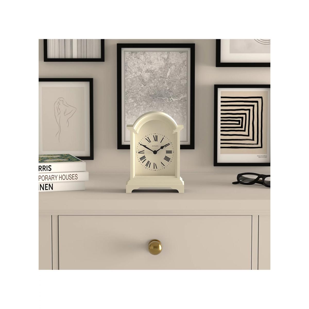 Jones Clocks Bistro Analogue Roman Numeral Mantel Clock, Linen White