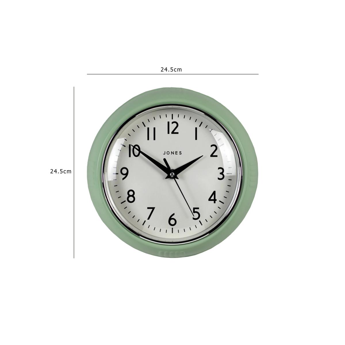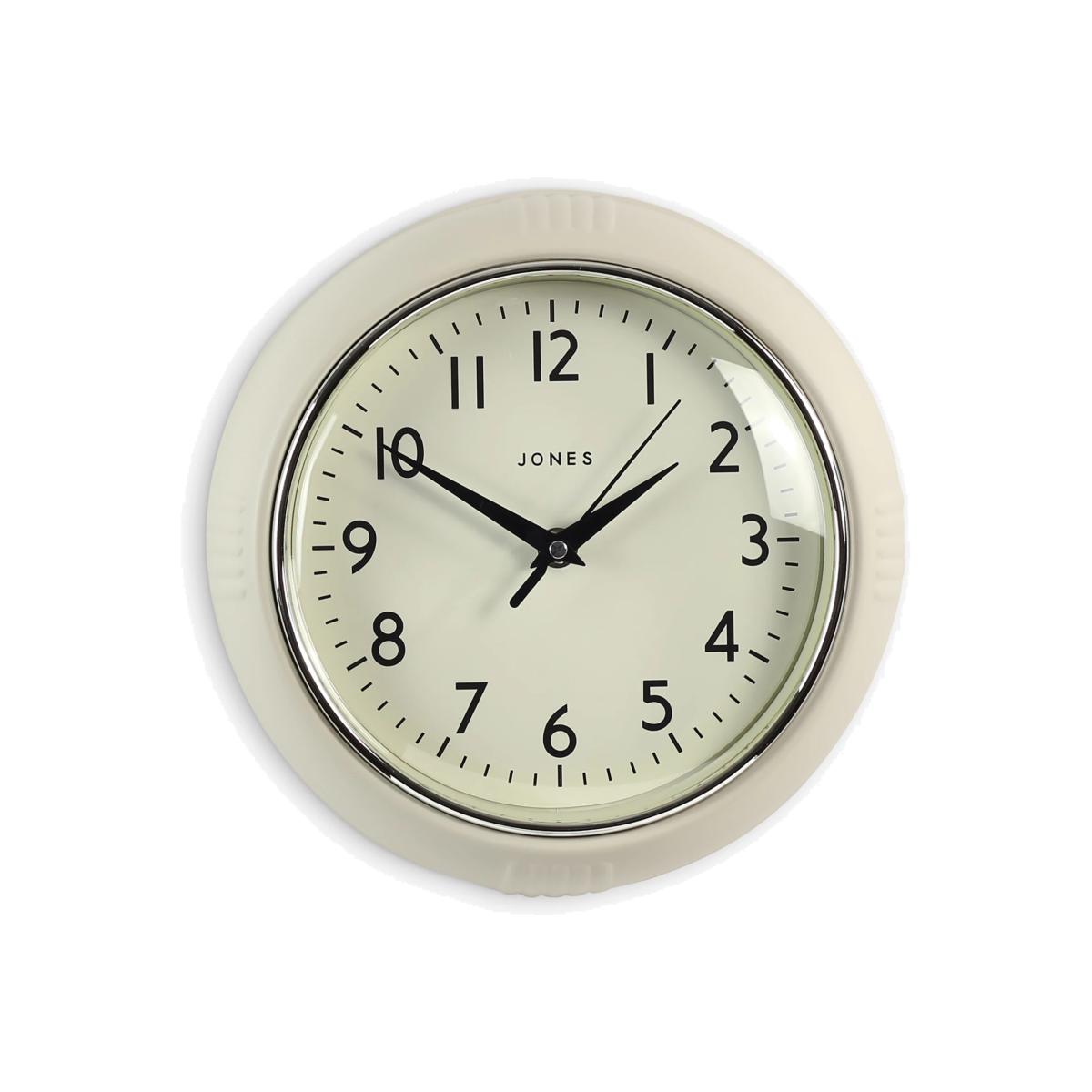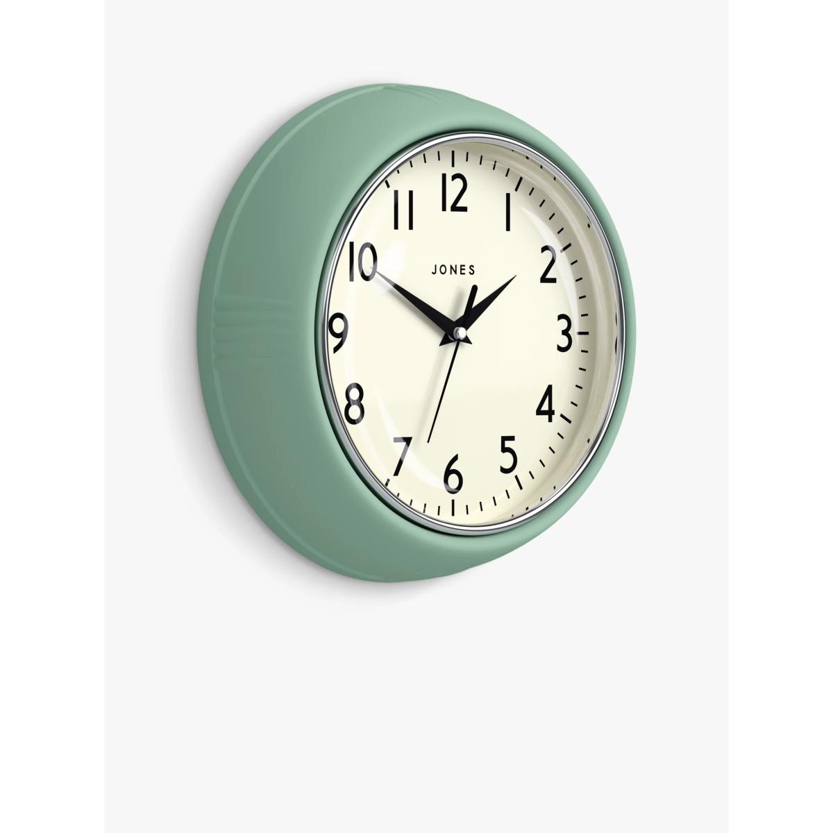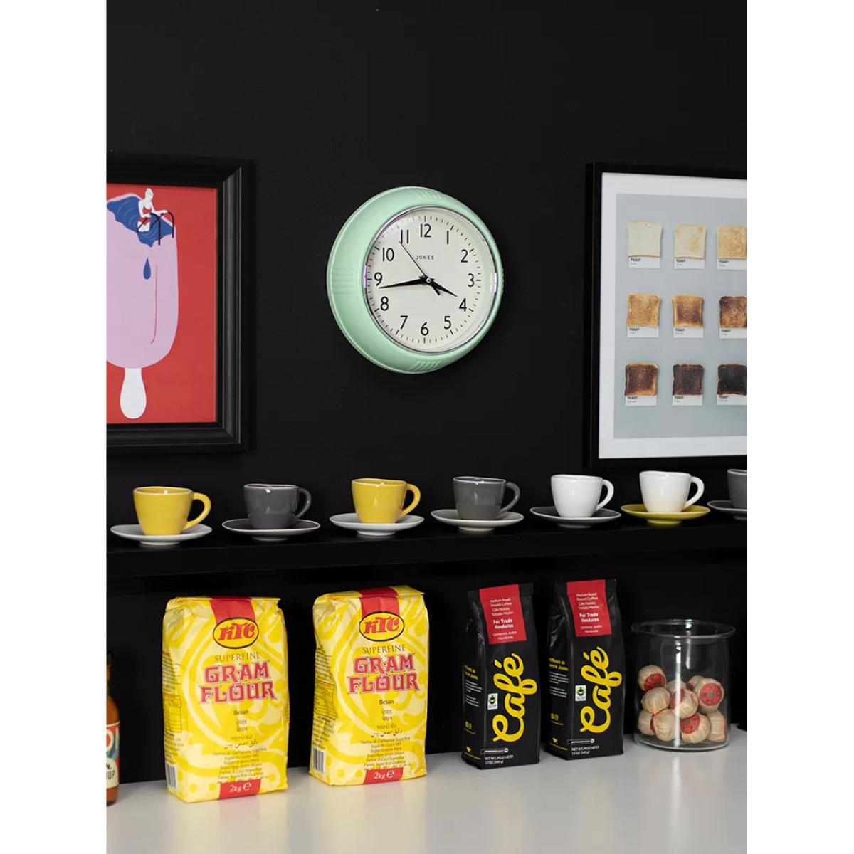 A vintage-inspired analogue wall clock, this compact design suits smaller kitchens and hallways. The round retro dial of the Ketchup clock from Jones Clocks has a deep casing, metallic bezel and compass clock hands behind a convex glass lens. Easy-to-read Arabic numerals mark the hours.
