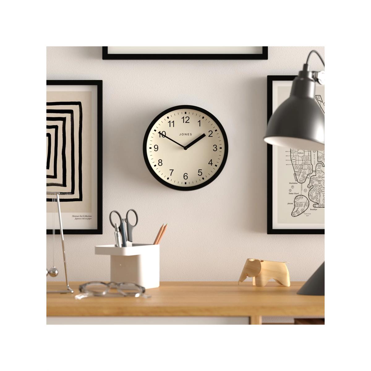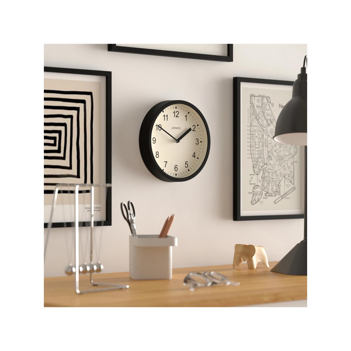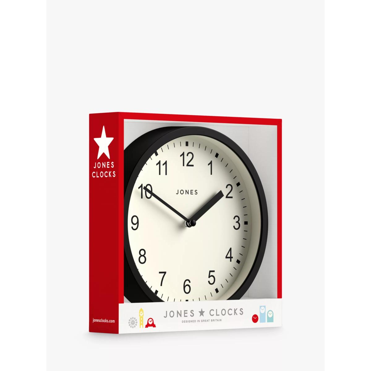 Jones Clocks Modern Analogue Wall Clock, 20cm, Matt Black