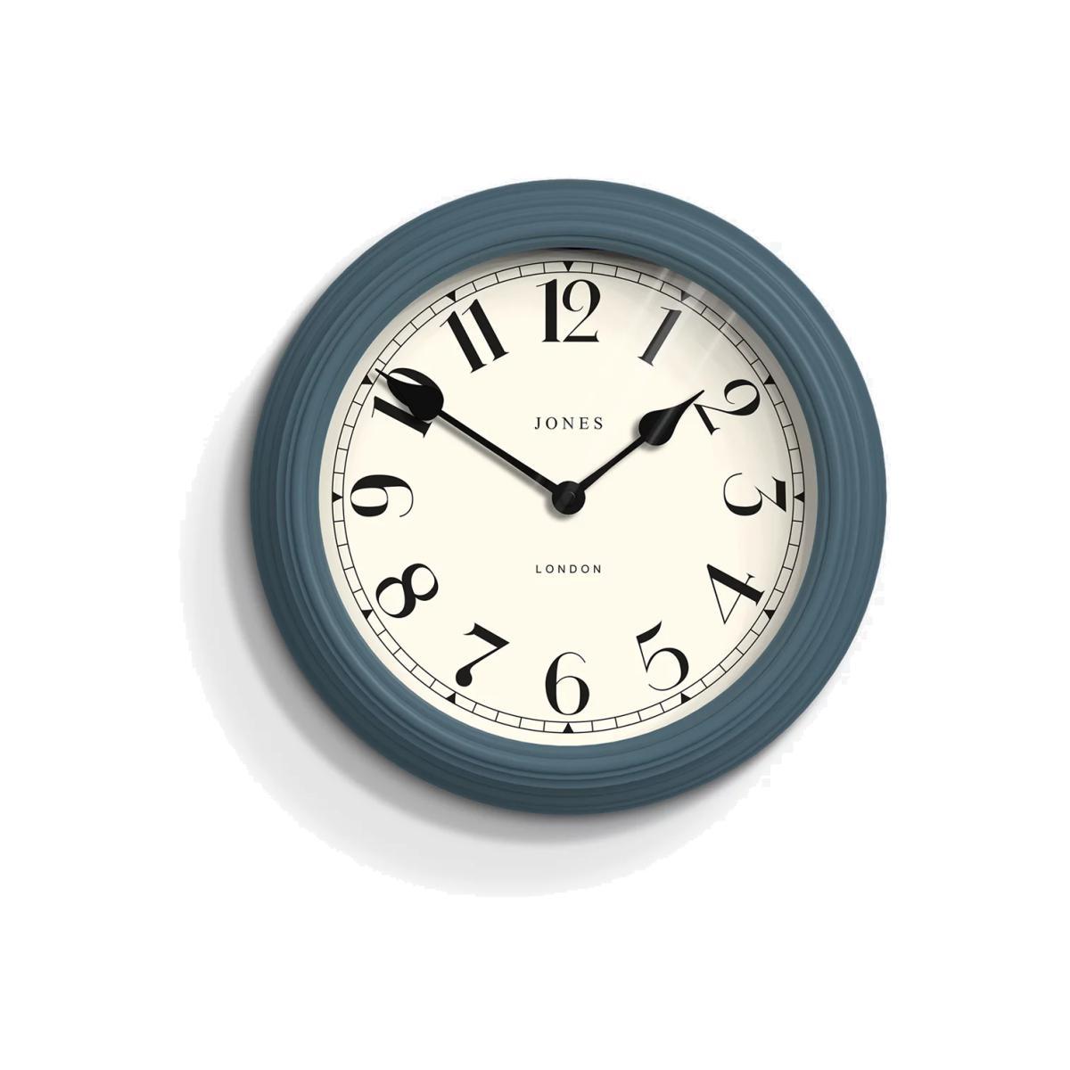 The Savoy wall clock from Jones Clocks has an easy-to-read Arabic numeral dial behind flat glass, framed by a decorative moulded metal case in a painted finish. This elegant clock is completed with metal teardrop hands.