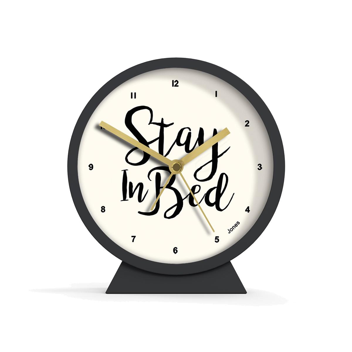 I love this clock for its playful yet versatile design, making it a great addition to both contemporary and cosy bedrooms. The grey finish keeps it understated, so it works well with neutral palettes or softer colour schemes, while the bold “Stay In Bed” message adds a fun personality. It’s practical too-easy to read and compact enough to fit on bedside tables or dressers. For styling tips, consider pairing it with minimalist bed linens or subtle decorative accents in similar tones for a cohesive look. Its modern aesthetic also makes it suitable for a desk in a home office or a kitchen countertop where a touch of humour can brighten the space. Overall, this piece is both functional and personality-filled, perfect for enhancing a relaxed yet stylish room.
