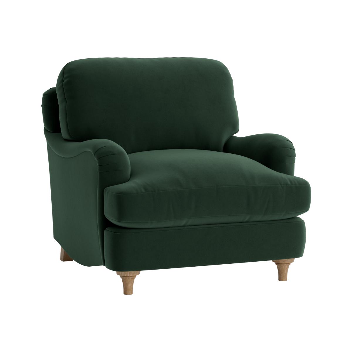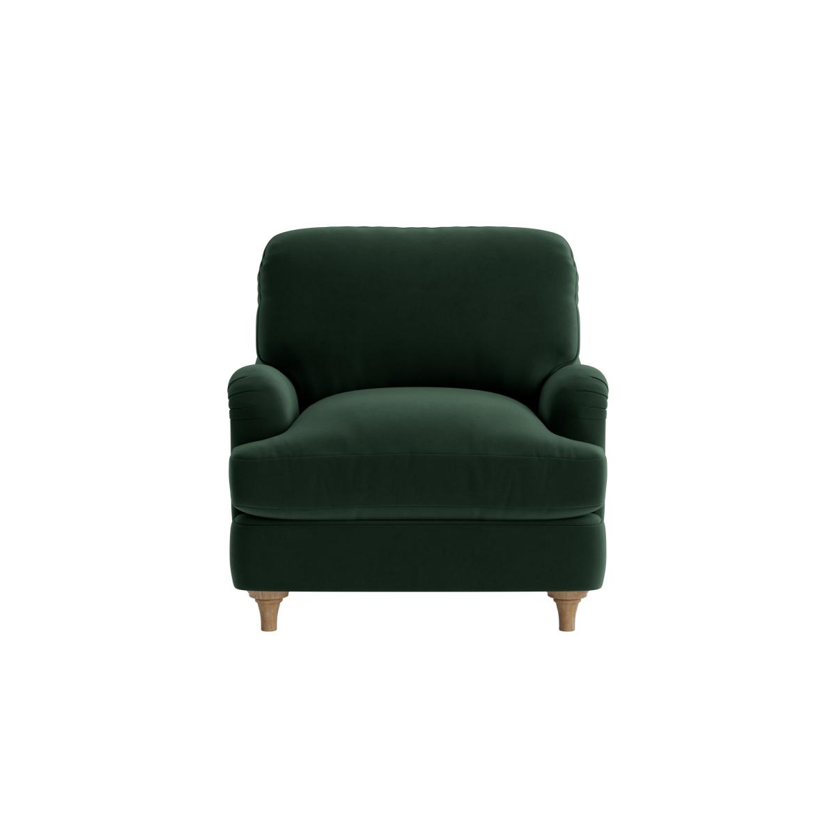 I love the Jonesy armchair for its timeless elegance and plush comfort, making it a versatile piece that can anchor both classic and contemporary interiors. Its rich, deep green shade adds a sophisticated touch, perfect for creating cosy reading nooks or as an inviting accent in living rooms. In terms of styling, it works well paired with natural wood or metal accents and layered with textured cushions or throws for added visual interest. Practical tips include placing it near a good reading light or beside a sofa to encourage conversation, while the sturdy wooden legs give it a slightly elevated look that works well on all types of flooring. Overall, this armchair brings a combination of style, comfort, and adaptability that you'll appreciate in many settings.