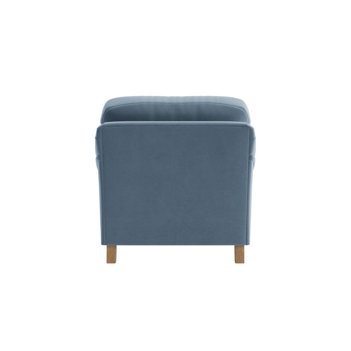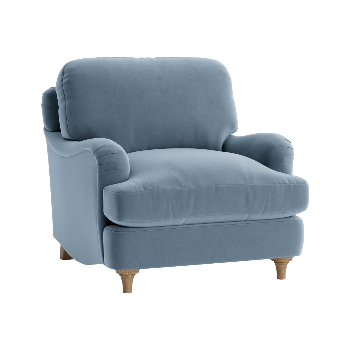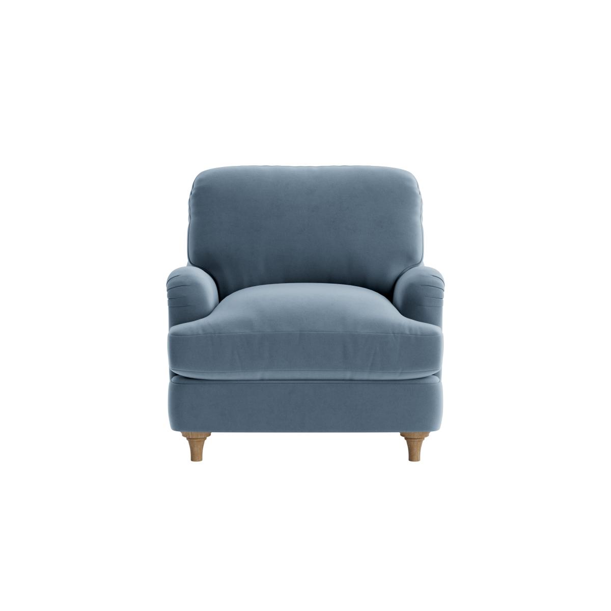 I love the Jonesy armchair for its classic yet relaxed silhouette, making it a versatile piece that can anchor both traditional and contemporary interiors. Its soft, muted blue fabric adds a touch of calm and can easily be styled with neutral palettes or layered with textured cushions for added visual interest. This armchair works well in cosy living rooms, reading nooks, or even as a statement piece in a bedroom corner. Practical styling tips include pairing it with a patterned rug to ground the space and accessorising with throw blankets to enhance comfort. Its modest size and approachable design make it an excellent choice for adding character without overwhelming the room.