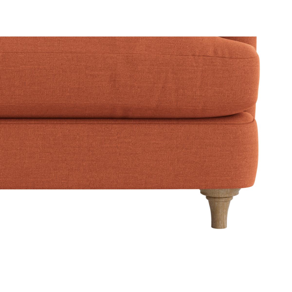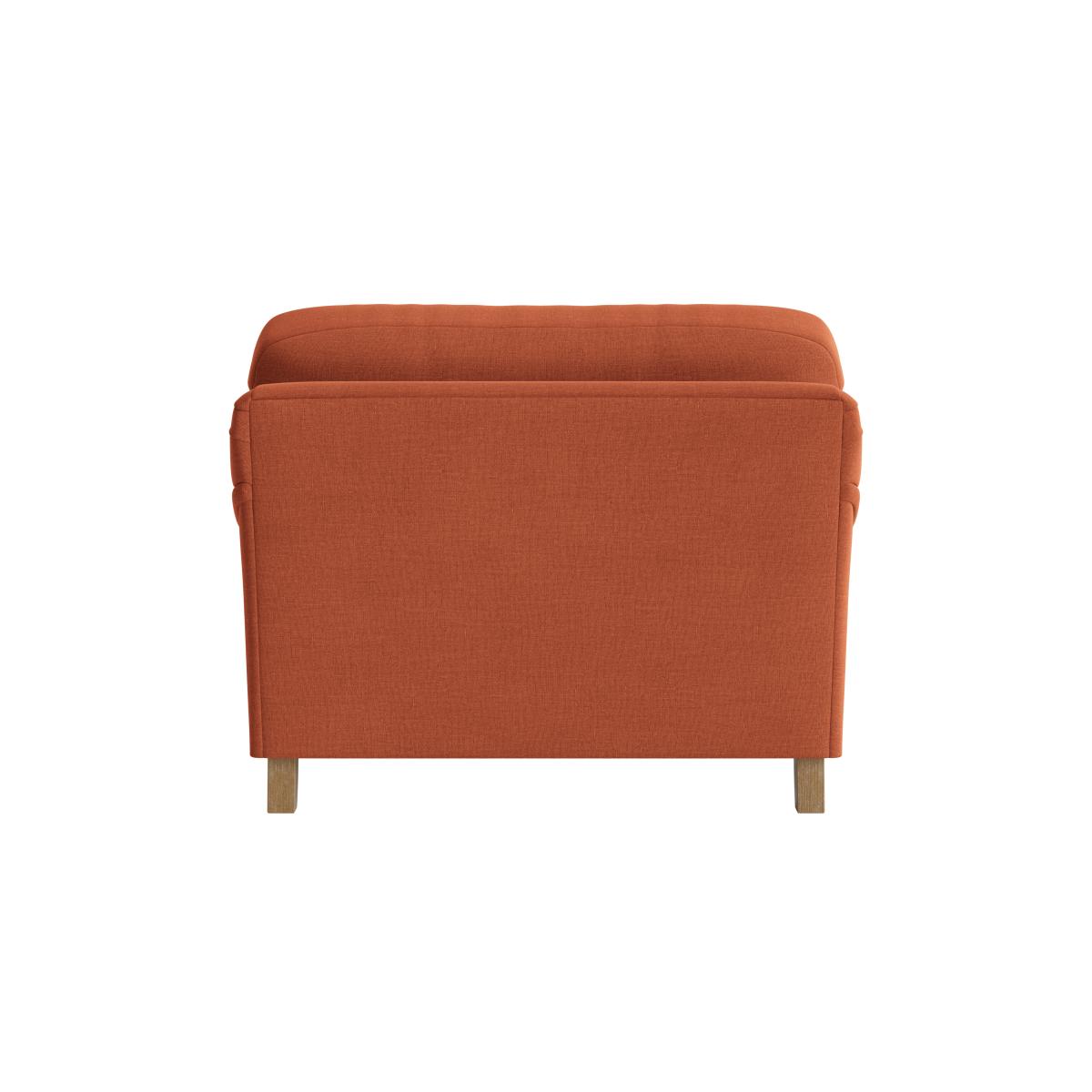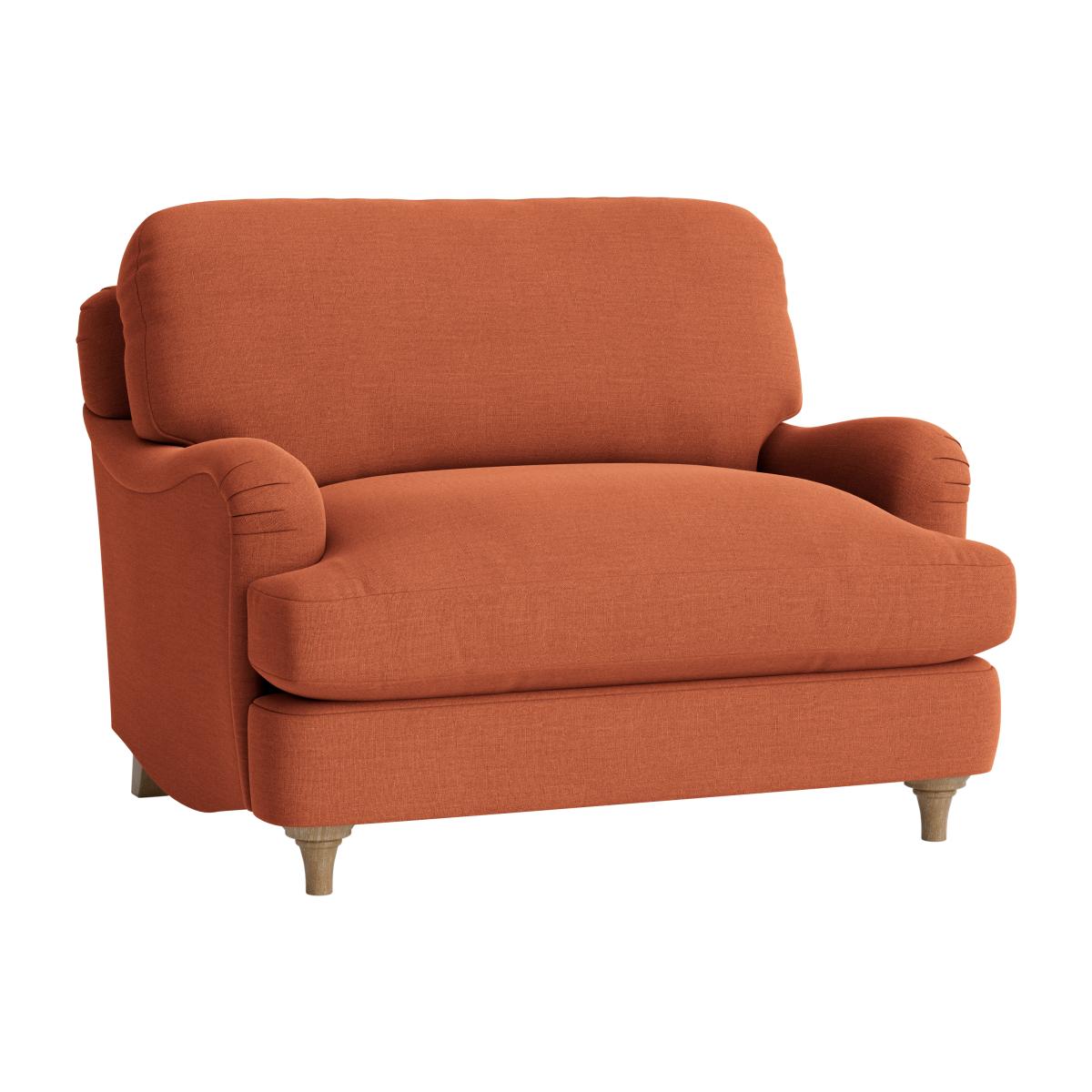 I love this little love seat for its versatile, understated charm. Its warm terracotta tone makes it a great anchor piece in both contemporary and vintage-inspired interiors, adding colour without overwhelming a room. It works well in cosy corner setups, as a secondary seating option in living rooms, or even in a bedroom lounge area. For styling, pair it with neutral throw pillows or textured blankets to soften the look, and complement it with wooden or brass accents to bring warmth. Its compact size makes it practical for smaller spaces, while the timeless design ensures it remains stylish over the years. This piece is a great choice for anyone looking to add a pop of colour and a touch of cosy comfort to their home.