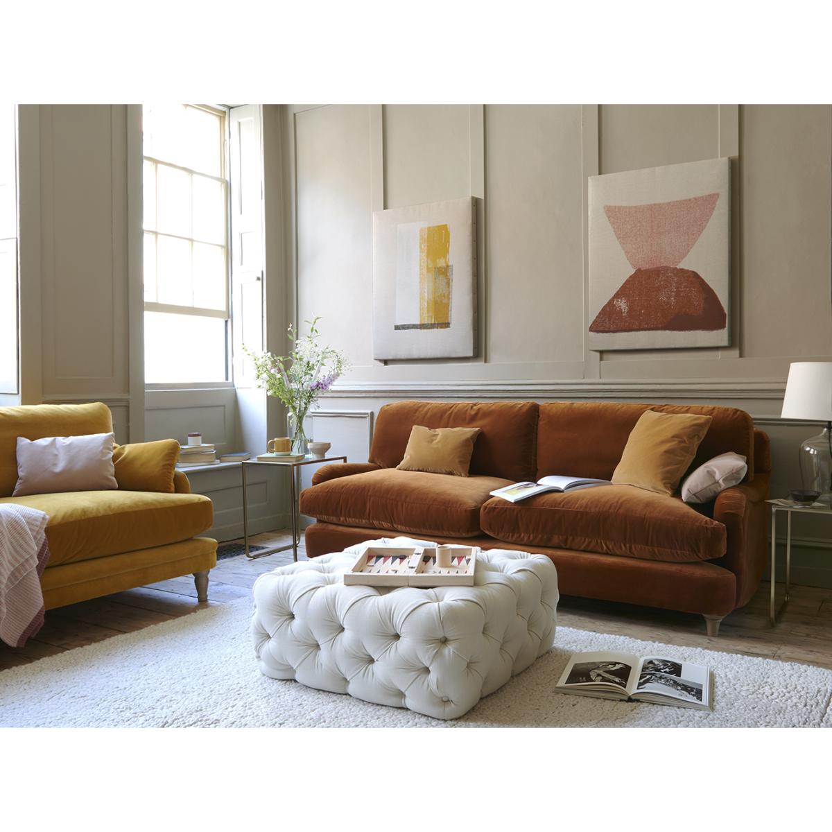 What makes our version of this timeless British classic different are the weathered oak legs. Not a brass castor so much as even sniffs near this handmade beauty. And it's also one of the snuggliest, comfiest sofas in town.