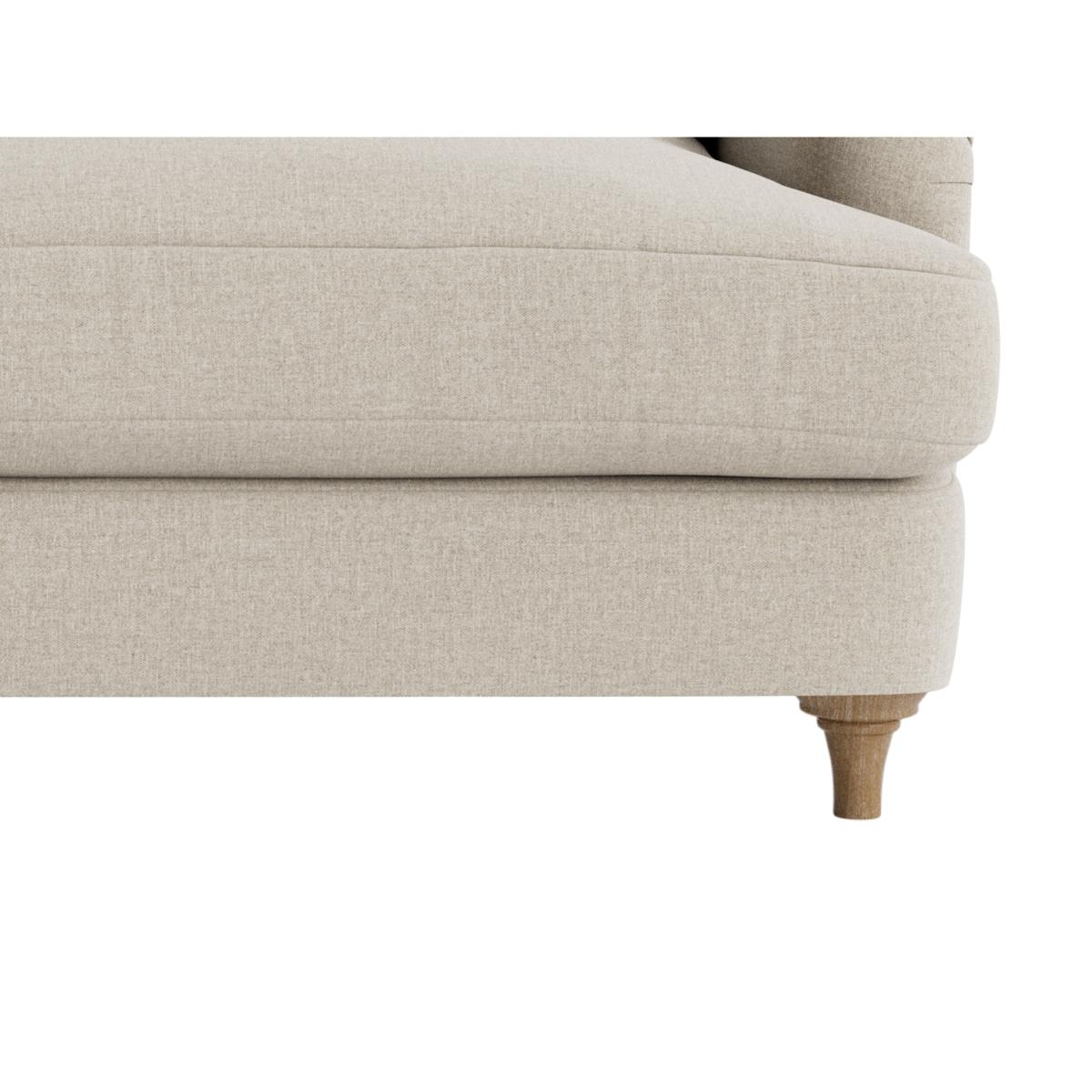 What makes our version of this timeless British classic different are the weathered oak legs. Not a brass castor so much as even sniffs near this handmade beauty. And it's also one of the snuggliest, comfiest sofas in town.