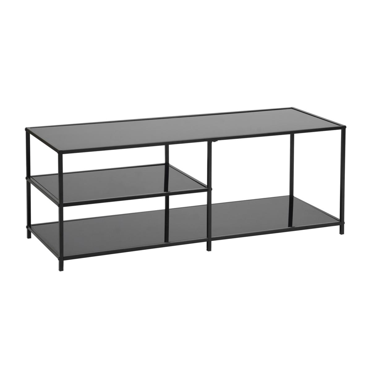 Rectangular coffee table with 3-tier black glass plates, stable and practical, these are the main characteristics of this black transparent table. The table has a spacious surface at floor height and thus offers enough storage space in front of the sofa. A metallic black frame gives the coffee table great stability and fits wonderfully with the table concept. Our modern coffee table is the perfect piece of furniture to complete the decor of your living room, living room or bedroom. The metal structure provides stability and contributes to the table's sleek style.