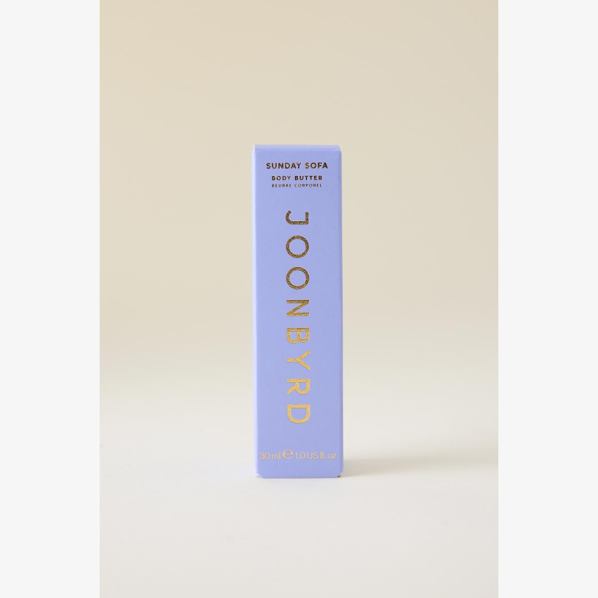 Quench your dry skin's thirst with the sumptuously rich and restorative Sunday Sofa body butter. Cocoon your skin in comfort. Scientifically-proven hydration for up to 48 hours. Discover advanced daily hydration with this rich, concentrated body butter. Engineered with rambutan leaf extract (a natural retinol alternative), hyaluronic acid and adaptogenic Siberian ginseng, a formula scientifically proven to enhance skin firmness and elasticity, and moisturise for up to 48 hours. Supercharged botanical butters and oils strengthen the skin barrier while ensuring this self-care ritual is anything but routine. Housed in a recyclable mini tube, perfect for travel or to trial. * By Joonbyrd * Travel size body butter * Plastic tube * Imported **How To Use:** * Apply liberally to freshly cleansed skin. **Full Ingredients:** * Aqua/Water/Eau, Butyrospermum Parkii (Shea) Butter, Behenyl Alcohol, Myristyl Myristate, Dicaprylyl Ether, Glycerin, Lauryl Laurate, Cetearyl Ethylhexanoate, Parfum (Fragrance), Glyceryl Stearate SE, Niacinamide, Polyglyceryl-3 Methylglucose Distearate, Nephelium Lappaceum Branch/Fruit/Leaf Extract, Sodium Hyaluronate, Inulin, Acanthopanax Senticosus (Eleuthero) Root Extract, Avena Sativa (Oat) Kernel Oil, Serine, Alanine, Glycine, Glutamic Acid, Phyllanthus Emblica Fruit Extract, Prunus Armeniaca (Apricot) Kernel Extract, Sesamum Indicum (Sesame) Seed Extract, Terminalia Ferdinandiana Fruit Powder, Lysine HCl, Threonine, Sodium Stearoyl Glutamate, Sodium PCA, Maltodextrin, Hydroxyacetophenone, Citric Acid, Betaine, Sodium Lactate, PCA, Xanthan Gum, Disodium EDTA, Arginine, Phenoxyethanol, Potassium Sorbate, Sodium Benzoate, Sodium Hydroxide, Arginine Levulinate, Proline, Benzophenone-4, Benzyl Salicylate, Linalool, Eugenol, Caramel, CI 19140 (Yellow 5), CI 15985 (Yellow 6), CI 17200 (Red 33).