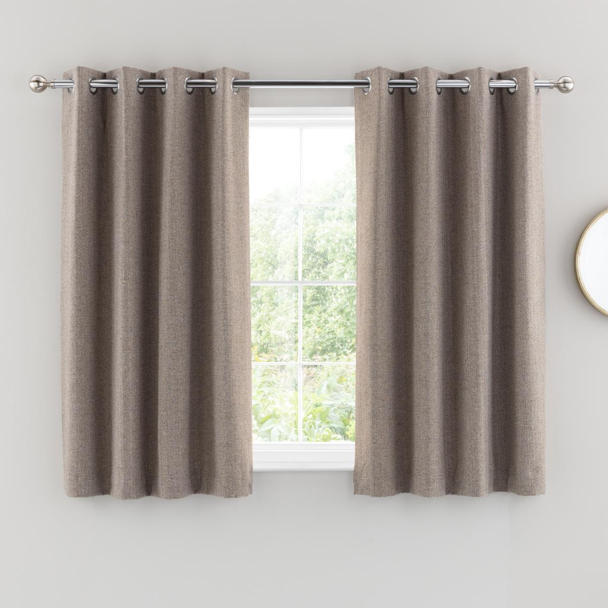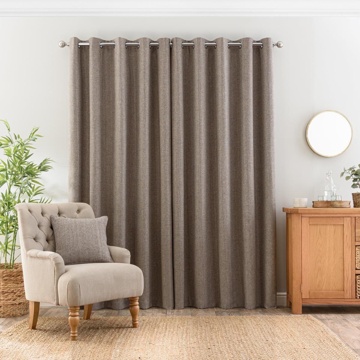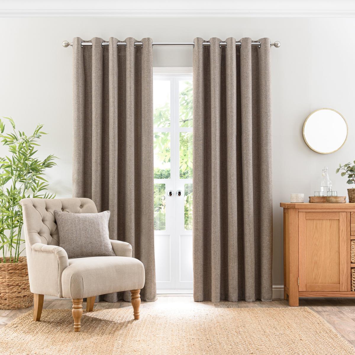 Welcoming the Jordan Eyelet Curtains in Pinecone, an elegant addition to your home that will elevate your space with modern charm and contemporary flair. Designed with meticulous attention to detail, these curtains are perfect for those who want a stylish atmosphere. Boasting a modern eyelet header, our Jordan Eyelet Curtains offer a hassle-free experience when it comes to installation. With this convenient design, you can effortlessly slide the curtains onto your curtain rod, allowing for smooth and easy opening and closing. Crafted from high-quality recycled polyester, these durable curtains are luxurious in both appearance and touch. Known for its excellent resistance to wrinkles and fading, the polyester composition will ensure that your curtains maintain their pristine appearance for years to come. The subtle neutral-brown of these curtains will bring a touch of sophistication to any room and will enhance the personality, and allure, of your home interior. To ensure the best fit for your windows, we offer these curtains in a range of nine different sizes. With such variety available, you can easily find the ideal dimensions to suit your needs and achieve a tailored look for your space. A matching cushion cover is available to purchase separately.