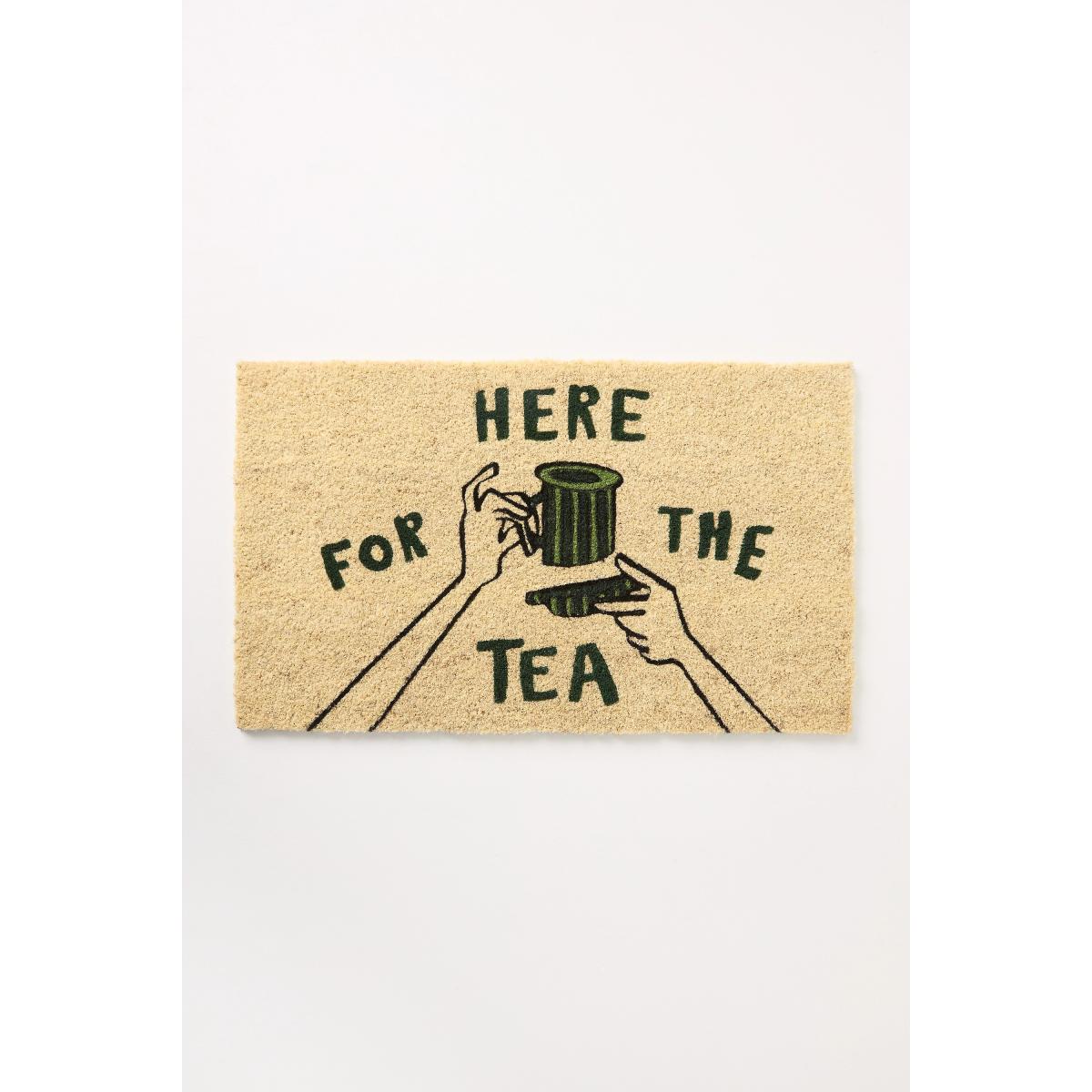 *Here for the tea!* This doormat captures the captivating scenes of everyday life through sketched graphics and phrases – designed by Jordan Nickson. **About Jordan Nickson** SimplyExtra Jordanary is led by digital artist Jordan Nickson. Inspired by mesmerizing colour palettes, relatable themes, and quirky linework, she creates minimalistic yet bold illustrations and typography. * Exclusively for Anthropologie * 100% coir; PVC backing * Screen-printed design * Intended for use in a sheltered outdoor area * Sweep clean * Imported