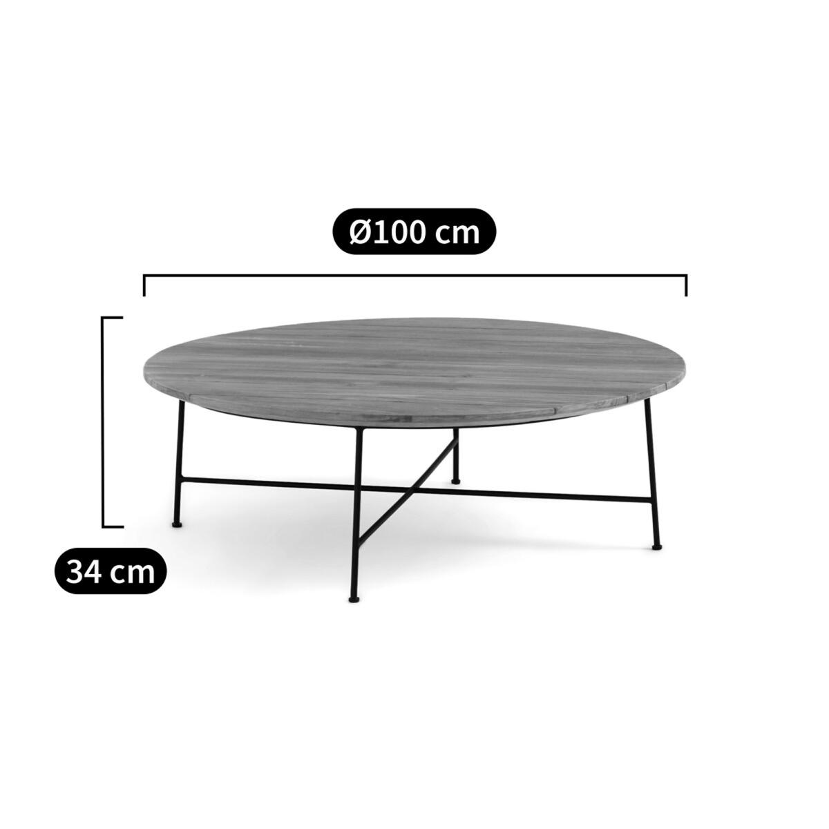 Solid teak top and galvanised steel base. The Jorik garden coffee table is made of specific materials suitable for outdoor use. A timeless coffee table by AMPM.