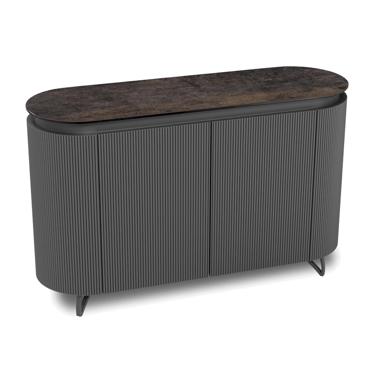 There are so many reasons why we love our Jose range of dining tables and dining sets. Made by expert ceramic furniture maker Akante, the look is cool and contemporary, quietly confident and quite elegant. The ceramic table top finishes – there are ten to choose from – are simply stunning. And the craftsmanship that you’ll find across this range is simply superb. Marble-patterned ceramic tops always perfectly match even when the table is extended. Star-shaped table bases make the most of small-space dining. Extension mechanisms are effortlessly easy to use. And the collection’s dining chairs smoothly swivel. The Akante Jose range is exclusively available at Furniture Village. This very stylish two-door sideboard has a curved and fluted frame and a beautiful ceramic top that’s available in a choice of ten different ceramic finishes. Only at Furniture Village. Why you'll love it Part of our Modern Dining Collection. Sleek modern style for your on-trend contemporary home. This exceptionally well-crafted sideboard has stylish curved ends. Choose from 10 beautiful ceramic finishes for the top, including marbled ceramic. So easy to look after. Ceramic is scratch-resistant, chip-resistant and heat-resistant. Frame has an on-trend fluted finish. Thoughtfully designed and spacious cupboard and drawer storage. Cupboard doors and drawers are soft closing. Designed and made by Akante exclusively for Furniture Village. This 2-door sideboard is part of our Jose range. What you need to know 2 single-door cupboards. Each cupboard has 2 removable shelves. Please note that the ceramic table top is not 100% heatproof. We recommend using coasters and placemats at all times. Wipe clean with a damp cloth. Dry with a soft duster. Do not use abrasive cleaning products. Part of our Jose collection of cool and contemporary dining room furniture. Item code: JOSESB2DSD-001
