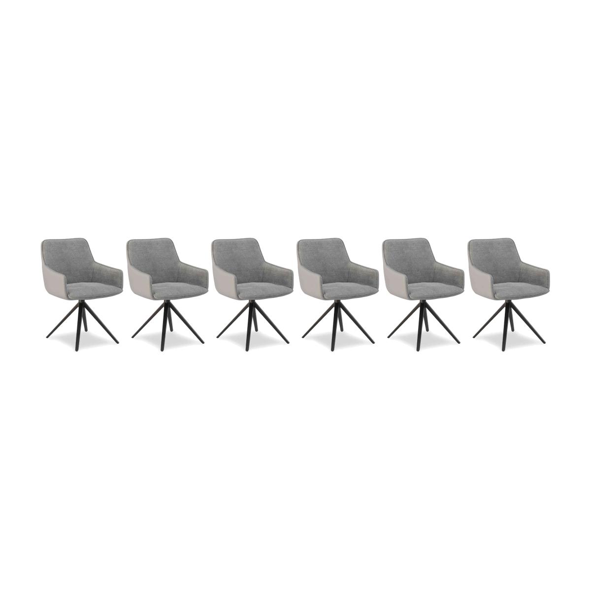 There are so many reasons why we love our Jose range of dining tables and dining sets. The look is cool and contemporary, quietly confident and quite elegant. The ceramic table top finishes – there are ten to choose from – are simply stunning. And the craftsmanship that you’ll find across this range is simply superb. Marble-patterned ceramic tops always perfectly match even when the table is extended. Star-shaped table bases make the most of small-space dining. Extension mechanisms are effortlessly easy to use. And the collection’s dining chairs smoothly swivel. The Jose range is exclusively available at Furniture Village and is part of our Modern Dining Collection. You’ll love how this set of six dining arm chairs looks around your dining table, and your family and friends will appreciate the swivel bases and supportive arms. In a choice of colours. Why you'll love it Part of our Modern Dining Collection. Sleek modern style for your on-trend contemporary home. Low profile backs with sweeping curves. Comfortably cushioned with supportive arms and 360° swivel bases. Matt black lacquered steel legs. Upholstered in a choice of fabric colours. Also available in sets of 2 and 4 dining chairs. This set of 6 swivel dining arm chairs is part of our Jose range. What you need to know Foam seat cushioning. Part of our Jose collection of cool and contemporary dining room furniture.