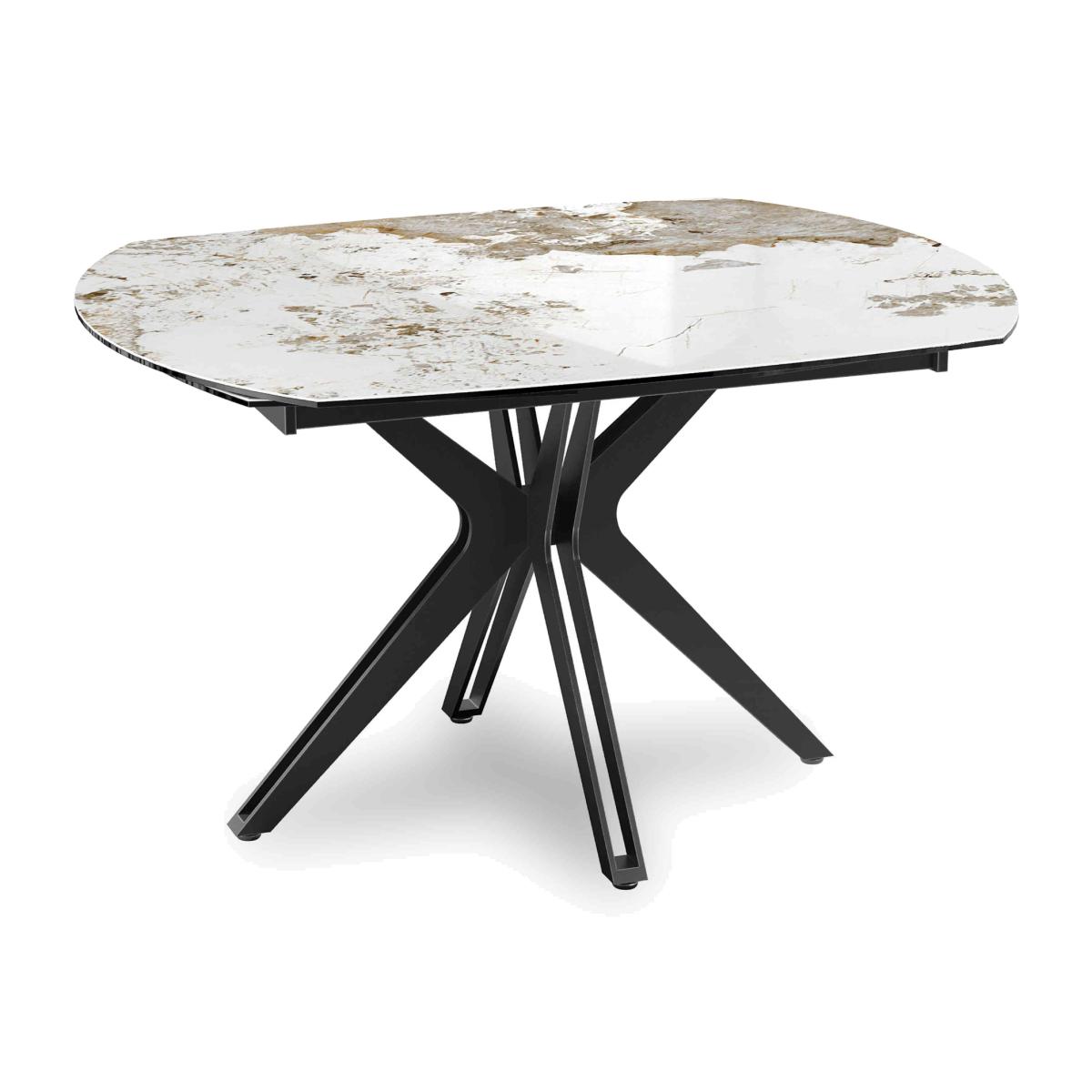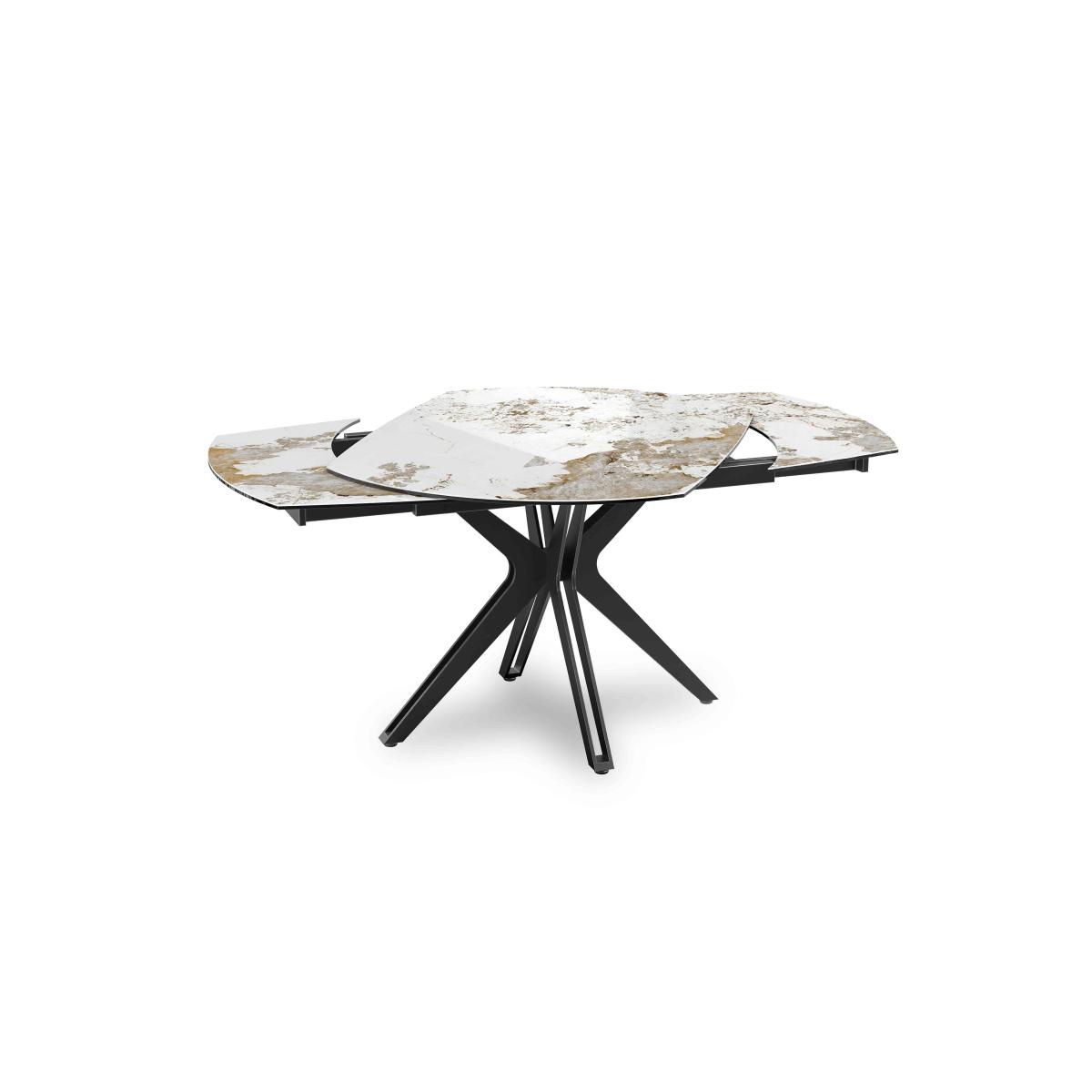 There are so many reasons why we love our Jose range of dining tables and dining sets. The look is cool and contemporary, quietly confident and quite elegant. The ceramic table top finishes – there are ten to choose from – are simply stunning. And the craftsmanship that you’ll find across this range is simply superb. Marble-patterned ceramic tops always perfectly match even when the table is extended. Star-shaped table bases make the most of small-space dining. Extension mechanisms are effortlessly easy to use. And the collection’s dining chairs smoothly swivel. The Jose range is exclusively available at Furniture Village and is part of our Modern Dining Collection. The top of this extending dining table rotates to extend and is finished in a choice of ten stunning ceramic colours and patterns. Only at Furniture Village. Why you'll love it Part of our Modern Dining Collection. Sleek modern style for your on-trend contemporary home. This exceptionally well-crafted extending dining table has a curved boat-shaped top. Choose from 10 beautiful ceramic finishes, including marbled ceramic. Such attention to detail – the marble patterning always matches whether the table is extended or closed. So easy to look after. Ceramic is scratch-resistant, chip-resistant and heat-resistant. Slender matt black lacquered metal legs are arranged in a star shape. It’s ergonomic as well as elegant – the leg design allows you to seat more diners in comfort. The table top of this swivel dining table rotates to extend. Available in 3 sizes. Only at Furniture Village. This swivel extending dining table is part of our Jose range. What you need to know Small swivel dining table seats 4 closed and 6 when extended. Medium swivel dining table seats 6 closed and 8 when extended. Large swivel dining table seats 8 closed and 10 when extended. Top is 3 mm ceramic layer on 6 mm glass layer. Steel legs with a lacquered finish. Please note that the ceramic table top is not 100% heatproof. We recommend using coasters and placemats at all times. Wipe clean with a damp cloth. Dry with a soft duster. Do not use abrasive cleaning products. Part of our Jose collection of cool and contemporary dining room furniture.