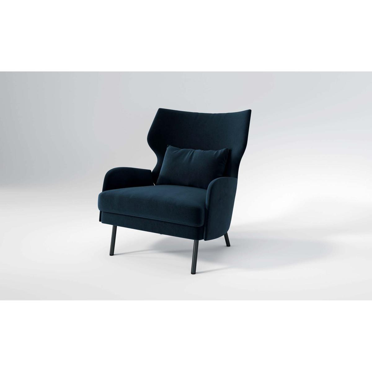 Distinctively mid-century in style, the Joseph collection includes a stylish armchair and footstool. The high wing back armchair comes with a soft feather filled cushion and, when combined with the gently sloping footstool, is the ideal place to relax with a good book. This bespoke collection can be upholstered in a range of luxe fabrics to suit your style. Pictured: armchair and footstool in Navy Blue Classic Velvet. Handmade in 8-10 weeks and then delivered usually within 10 working days. All pieces from this collection will be delivered without the legs attached. Our delivery specialists will assemble your item for you and take away the packaging.