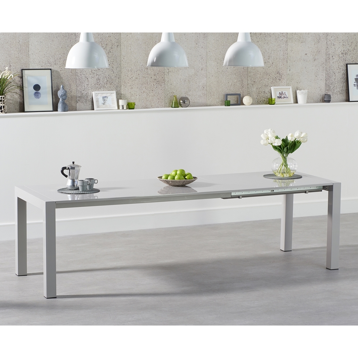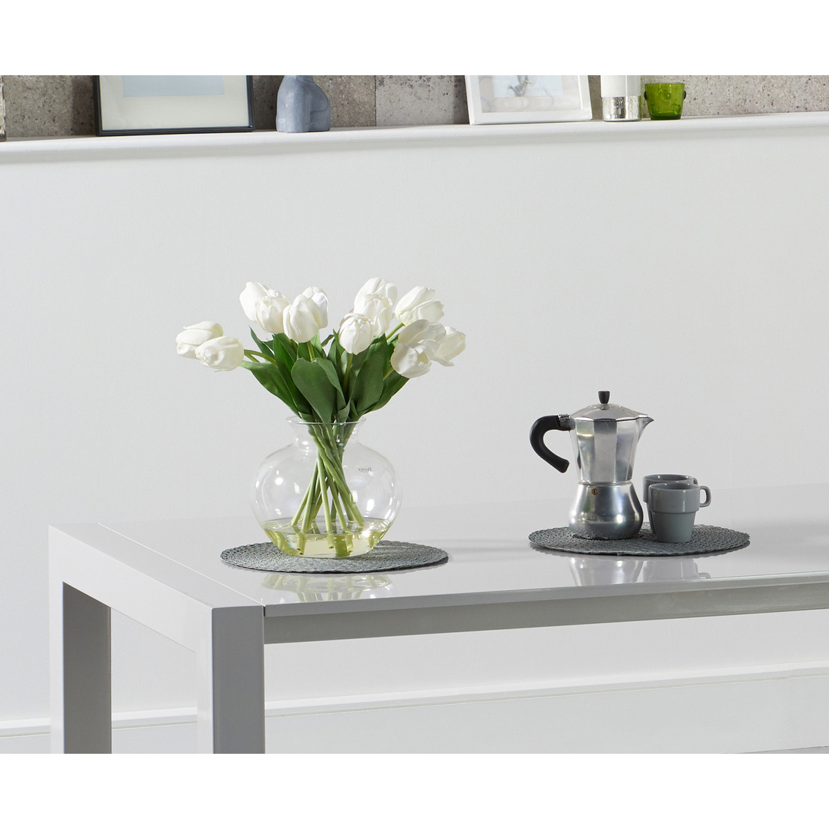 If you frequently need to cater to large parties at once but don’t want a large dining table taking up too much space the rest of the time, you’d do well to consider the Joseph Extending Light Grey High Gloss Dining Table. Using internally stored panels, this table can provide three different surface lengths, with the longest making the table capable of seating up to 12 people. Accessing the internally stored panels in their felt-lined compartment is simply a question of undoing the switch at the side of table and then pulling the legs away from the centre of the table. For a length of 219cm, add one panel and for a length of 264cm, add both. Following this, simply lock the table again. Crafted from solid hardwood and featuring metal legs, this table has been finished with a light-grey high-gloss lacquer that adds a beautifully reflective sheen as well as making it easy to clean.